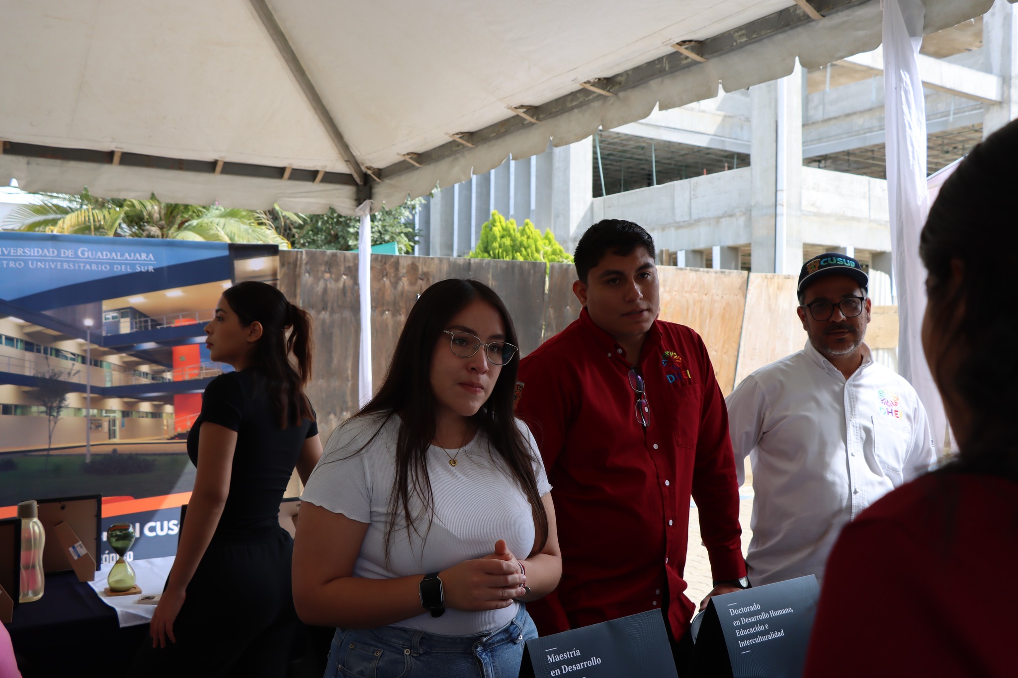 El evento de inauguración concluyó con el corte de listón inaugural, encabezado por la Mtra. Mariana Domínguez Cobián, secretaria administrativa del CUSur, con lo que oficialmente dieron inicio las actividades de la Tercera Feria del Empleo CUSur 2026, un espacio diseñado para impulsar la vinculación, el talento universitario y el desarrollo profesional de la comunidad.