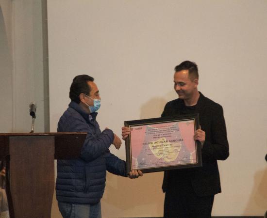 Se entregó el reconocimiento al Mérito teatral al director de “Studio Lenea Teatro” Felipe Aguilar Sánchez, por la carrera teatral que ha formado a lo largo de los últimos años, y su trabajo y esfuerzo en la realización de teatro educativo para la comunidad zapotlense. Aguilar Sánchez dijo que “nada es mío, todo es todos, hay muchas personas detrás que también se merecen este reconocimiento como todos los que trabajan para el teatro, mi familia, colegas y compañeros teatreros que me retroalimentan en esta labor”.