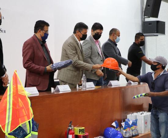 El pasado 25 de febrero se llevó a cabo la entrega de equipo de trabajo y uniformes al personal de Servicios Generales del Centro Universitario del Sur (CUSur). Durante la entrega, que se llevó a cabo en el auditorio Adolfo Aguilar Zínser, estuvieron presentes autoridades del centro universitario, así como el Coordinador de Servicios Generales, Guillermo Moreno Figueroa, y el representante del personal Óscar Alfredo Sánchez Mariscal.