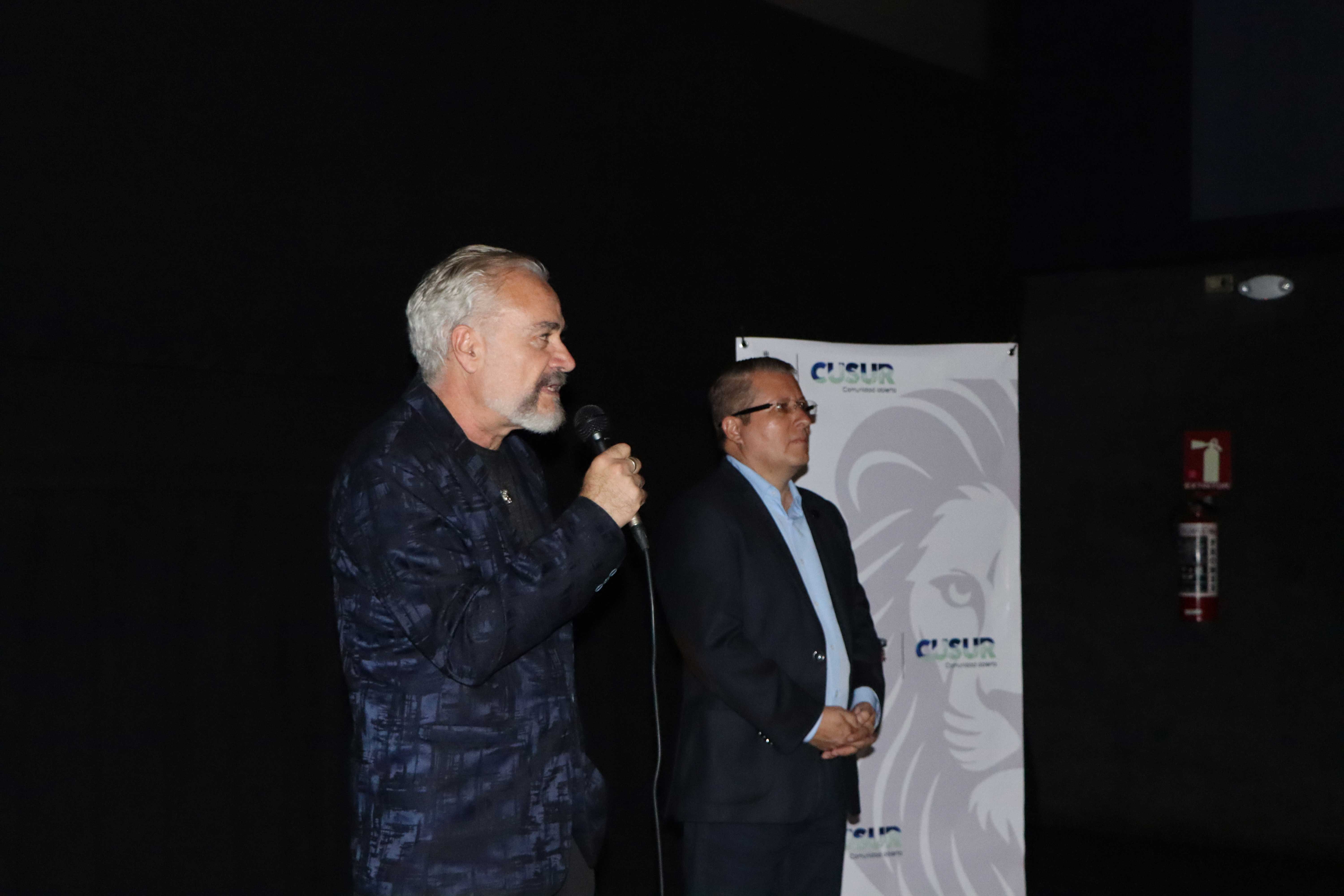 El evento contó con la presencia de autoridades del Centro Universitario del Sur (CUSur), entre ellas el doctor Dante Jaime Haro Reyes, rector del campus, quien dio la bienvenida y agradeció la oportunidad de abrir espacios de diálogo entre la comunidad universitaria y el arte cinematográfico.
