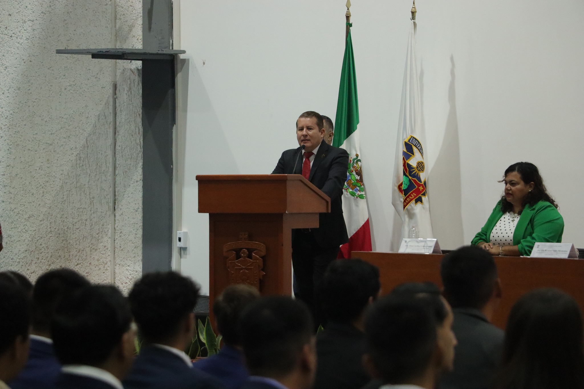 En representación de las coordinaciones de carrera, la doctora Liliana Carolina Córdova Albores ofreció un mensaje en el que reconoció el esfuerzo de quienes concluyen esta etapa y los motivó a enfrentar con decisión los retos que les esperan. También enfatizó la importancia de innovar, transformar y construir su propio camino: “Su titulación marca el inicio de una nueva etapa. No se conformen con lo establecido; inventen su estilo y prepárense para todo lo que viene”, comentó.