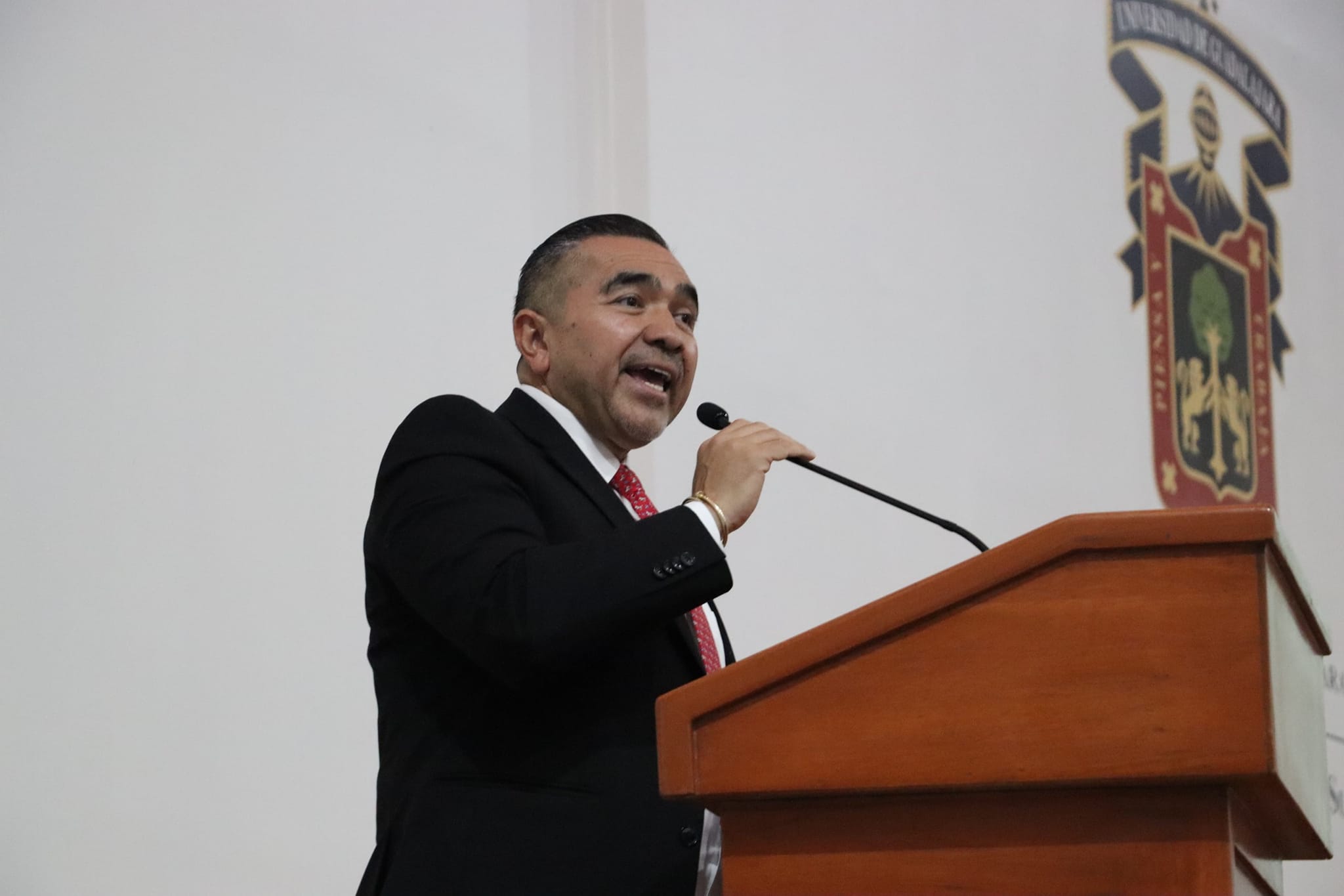 El maestro Juan Carlos Jiménez Mejines, coordinador de la carrera de Abogado en el CUSur, destacó la importancia de la constante actualización en el campo jurídico, citando a Eduardo Couture: "El derecho se transforma constantemente, si no sigues sus pasos, serás cada día un poco menos abogado".