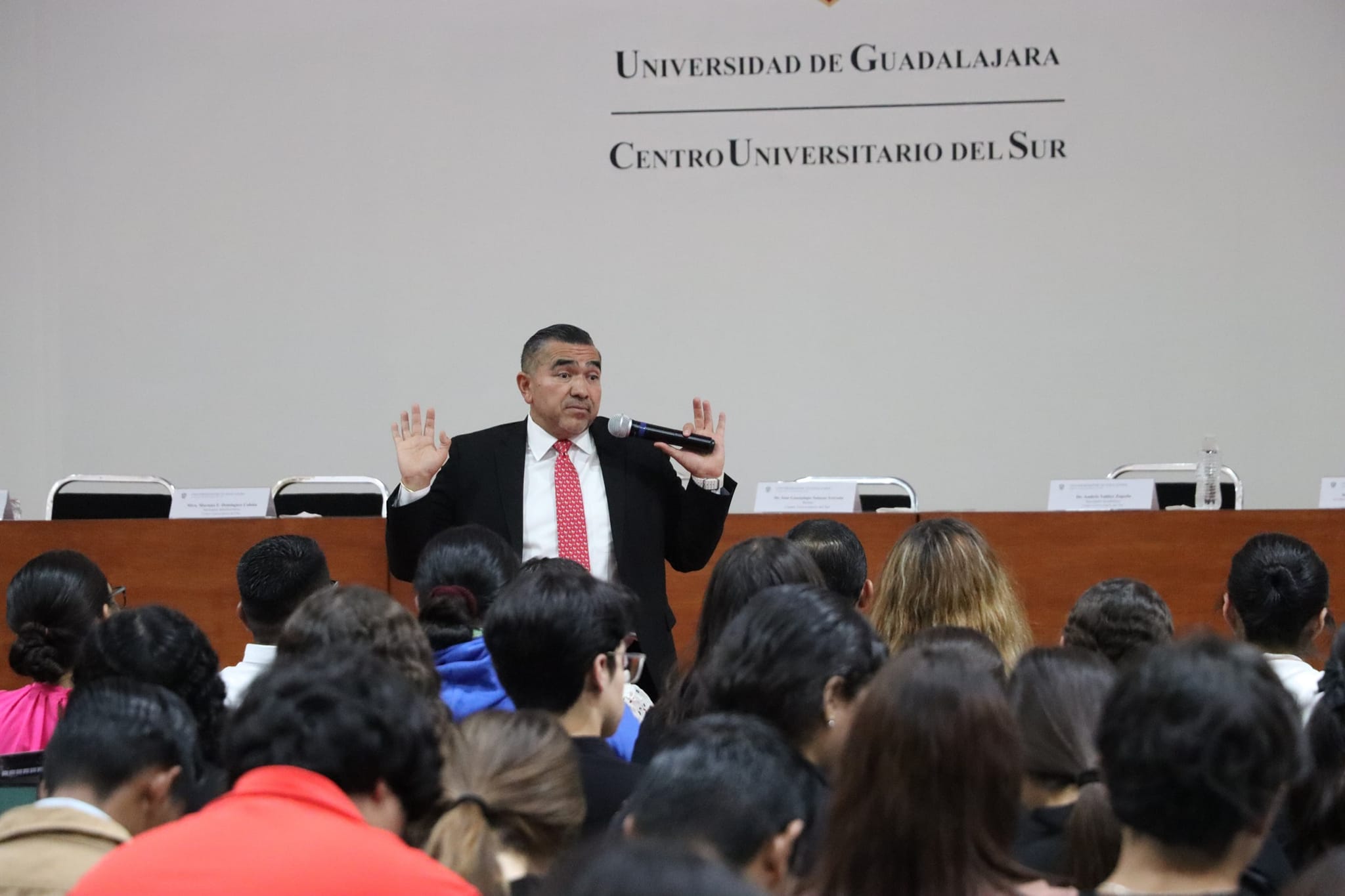 El doctor José Guadalupe Salazar Estrada, Rector del CUSur, resaltó que estas jornadas académicas permiten a los estudiantes analizar y reflexionar sobre los retos actuales del derecho, con el apoyo de expertos en la materia.