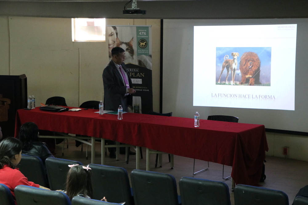 Durante el sábado 21 de enero, se expusieron tres conferencias en el Auditorio 1 de CASA. La primera llamada “Conformación canina”, dictada por el MVZ César Gutiérrez Pérez, en la que se presentó a la comunidad de veterinaria del CUSur las características físicas y de comportamiento de distintas razas de caninos.