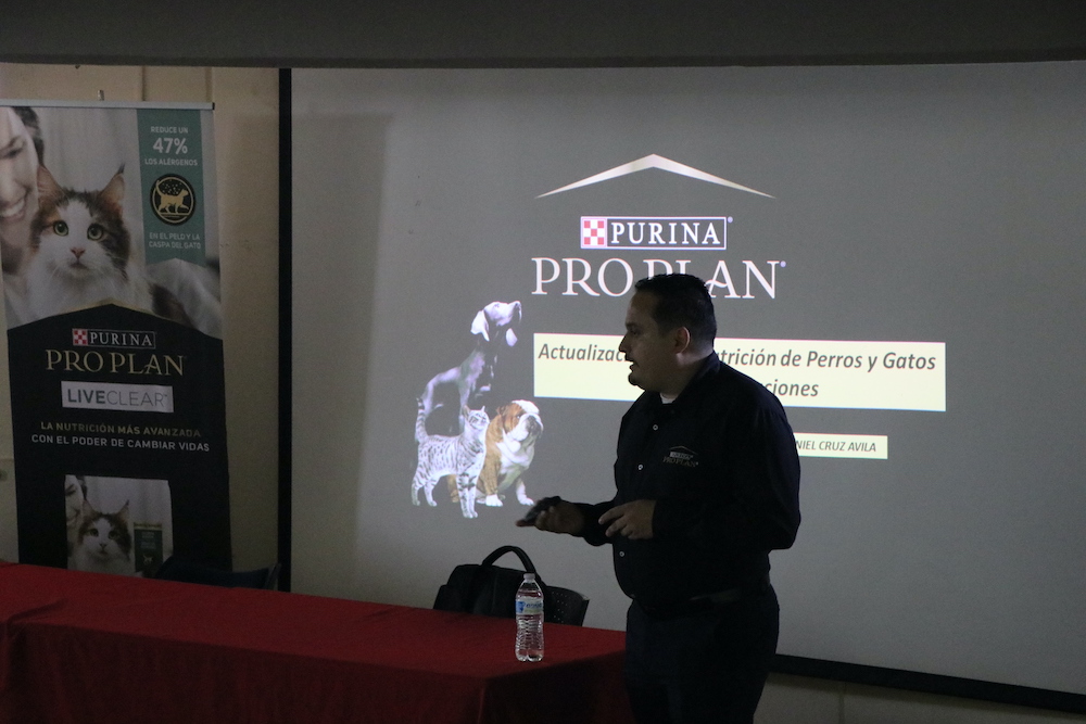 En la segunda conferencia, titulada “Formulación de raciones para perros y gatos”, el MVZ Daniel Cruz Ávila, expuso las características que se deben tomar en cuenta en los perros y su contexto para formular raciones adecuadas a sus necesidades nutricionales.