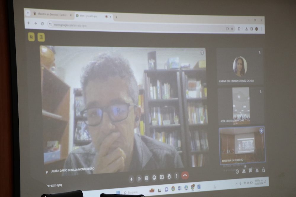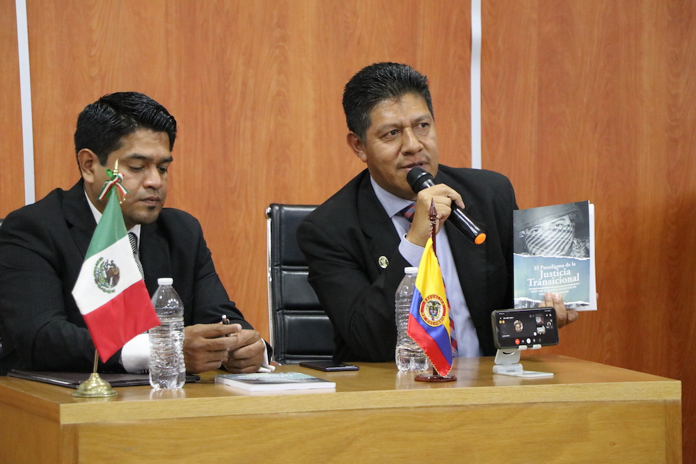 De manera remota, el doctor Julián Darío Bonilla Montenegro, prologuista del libro, a través del caso de Colombia con el acuerdo de paz que el gobierno de ese país firmó con las Fuerzas Armadas Revolucionarios de Colombia (FARC), explicó cómo la justicia transicional viene a proponerse e implementarse después de graves violaciones a los derechos humanos. “Muchas veces, la idea que se configura, social y culturalmente hablando, es creer que simplemente por el hecho de que haya una norma, una ley, nos encontramos con algo que va a suceder y que va a lograr un cambio esencial en las condiciones en las cuales nos encontramos”.