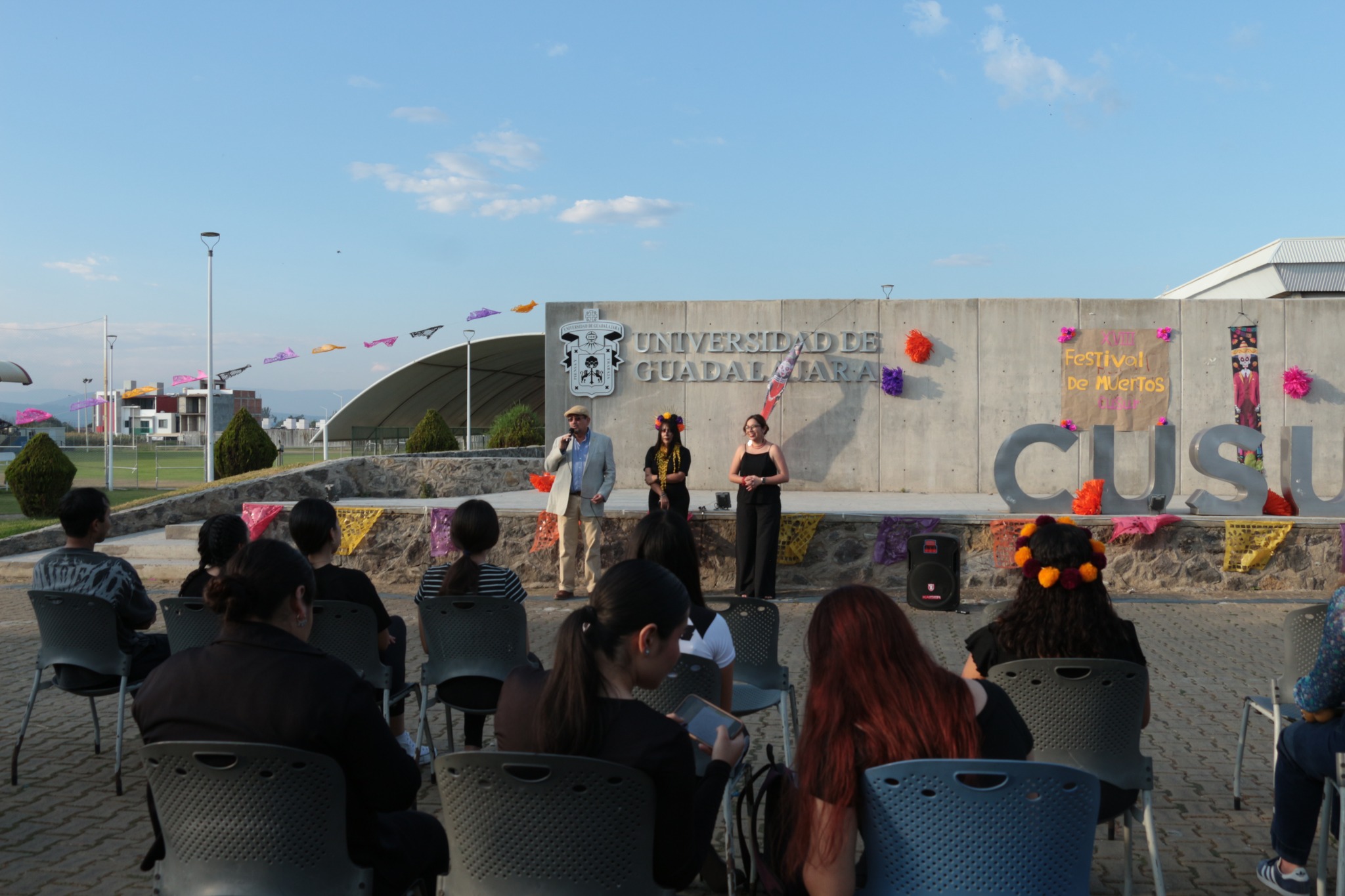El maestro Alfredo Tomás Ortega Ojeda, jefe del Departamento de Artes y Humanidades, recordó que este festival se realiza desde 2007, incluso antes de que la UNESCO reconociera al Día de Muertos como Patrimonio Cultural Inmaterial de la Humanidad, destacó la labor de estudiantes y docentes que han mantenido viva la tradición a lo largo de los años.
