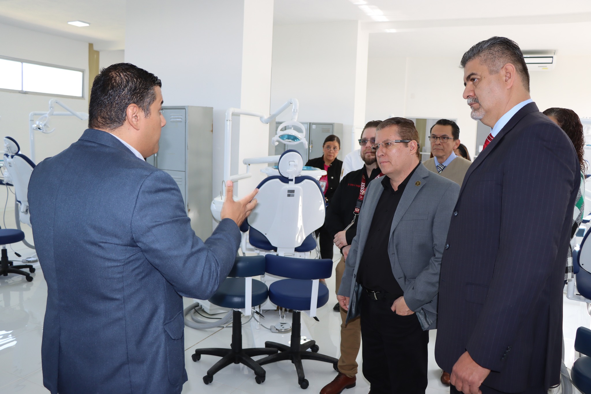 Por su parte, el maestro Alfonso Barajas Martínez, director de la División de Ciencias de la Salud, destacó que la Clínica Escuela de Odontología representa una inversión global superior a los 25 millones de pesos, destinada a su construcción y consolidación, lo que ha permitido contar actualmente con 40 unidades dentales, distribuidas entre la planta baja y la segunda planta. Señaló que este proyecto representa un logro significativo para el desarrollo académico del programa y fortalece los campos clínicos del estudiantado.