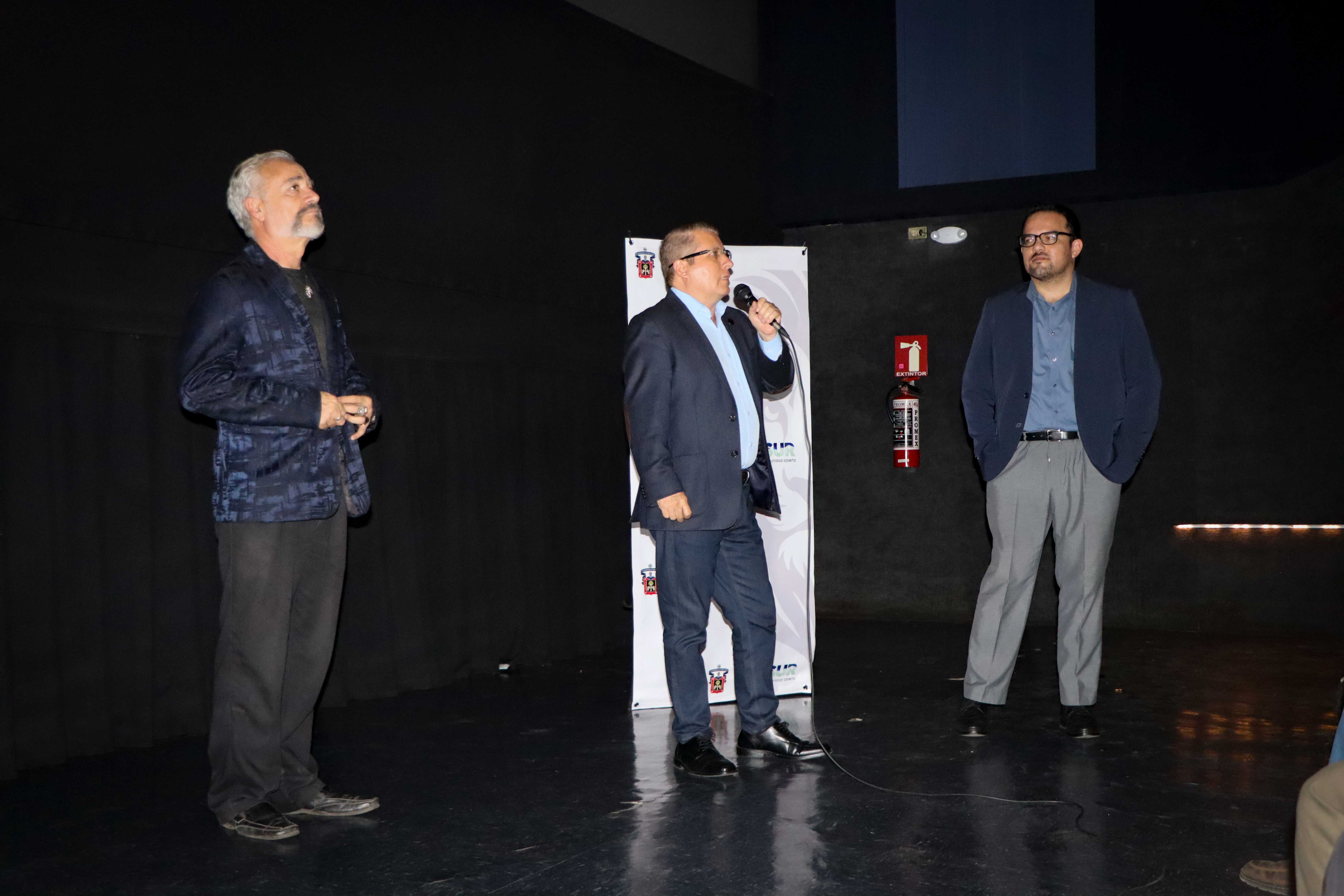 El evento contó con la presencia de autoridades del Centro Universitario del Sur (CUSur), entre ellas el doctor Dante Jaime Haro Reyes, rector del campus, quien dio la bienvenida y agradeció la oportunidad de abrir espacios de diálogo entre la comunidad universitaria y el arte cinematográfico.