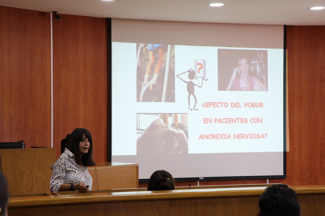 De manera grupal, las investigadoras compartieron situaciones en las que sus investigaciones se han aplicado directamente, destacando el trabajo multidisciplinar realizado con psiquiatras en el tratamiento de la anorexia nerviosa, utilizando, por ejemplo, el yogur para potenciar el sistema inmune de las personas en tratamiento.