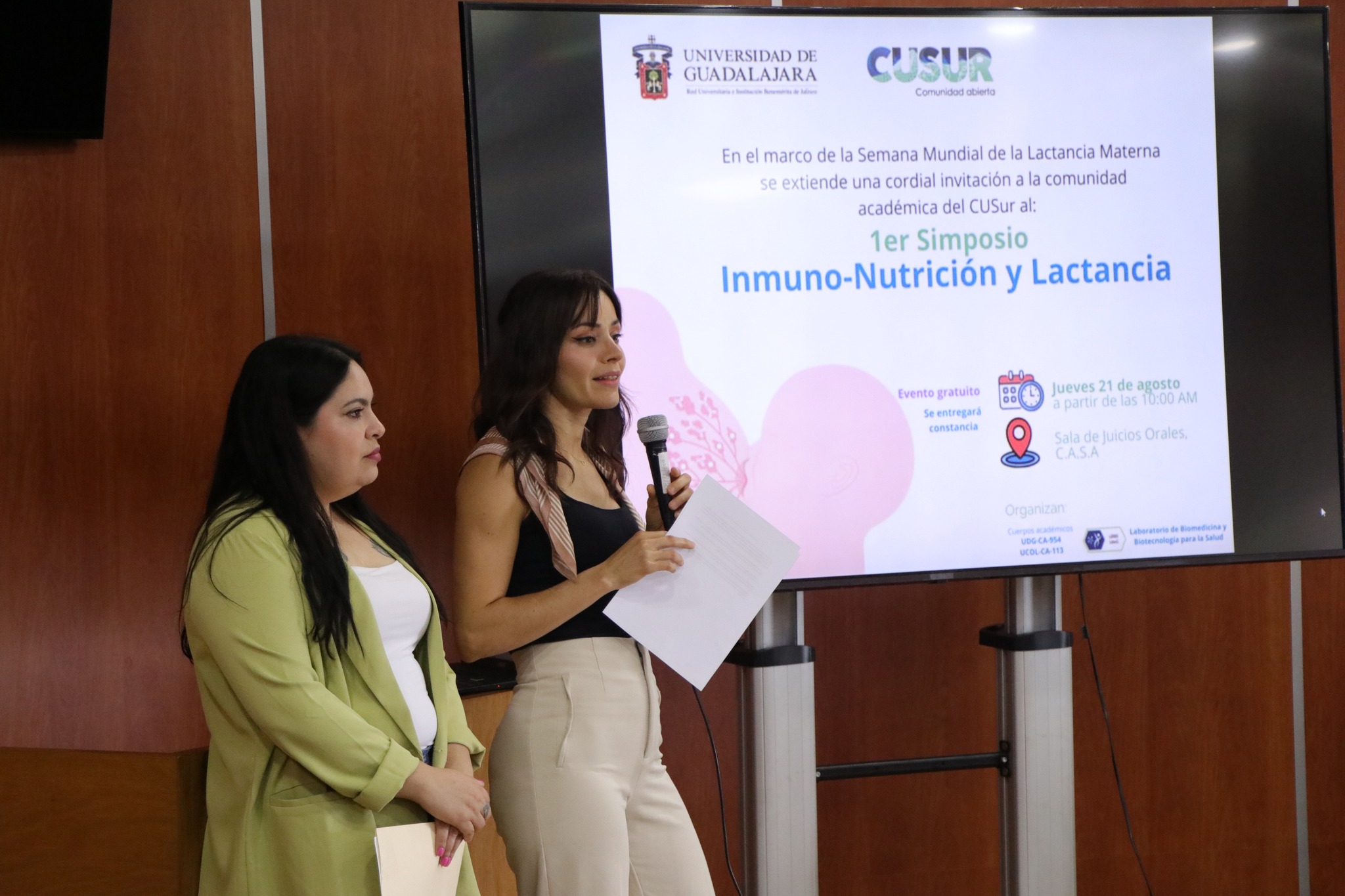En el marco de la Semana Mundial de la Lactancia Materna, celebrada cada año del 2 al 7 de agosto, se realizó en el Centro Universitario del Sur (CUSur) el Primer Simposio de Inmuno-Nutrición y Lactancia, en la Sala de Juicios Orales C.A.S.A. El evento fue coordinado por investigadoras del cuerpo académico UDG-CA 954 Investigación en Biomedicina, Nutrición y Comportamiento, del Laboratorio de Biomedicina y Biotecnología para la Salud de la Universidad de Guadalajara, en colaboración con el cuerpo académico UCOL-CA 113 Medicina Traslacional, de la Universidad de Colima.