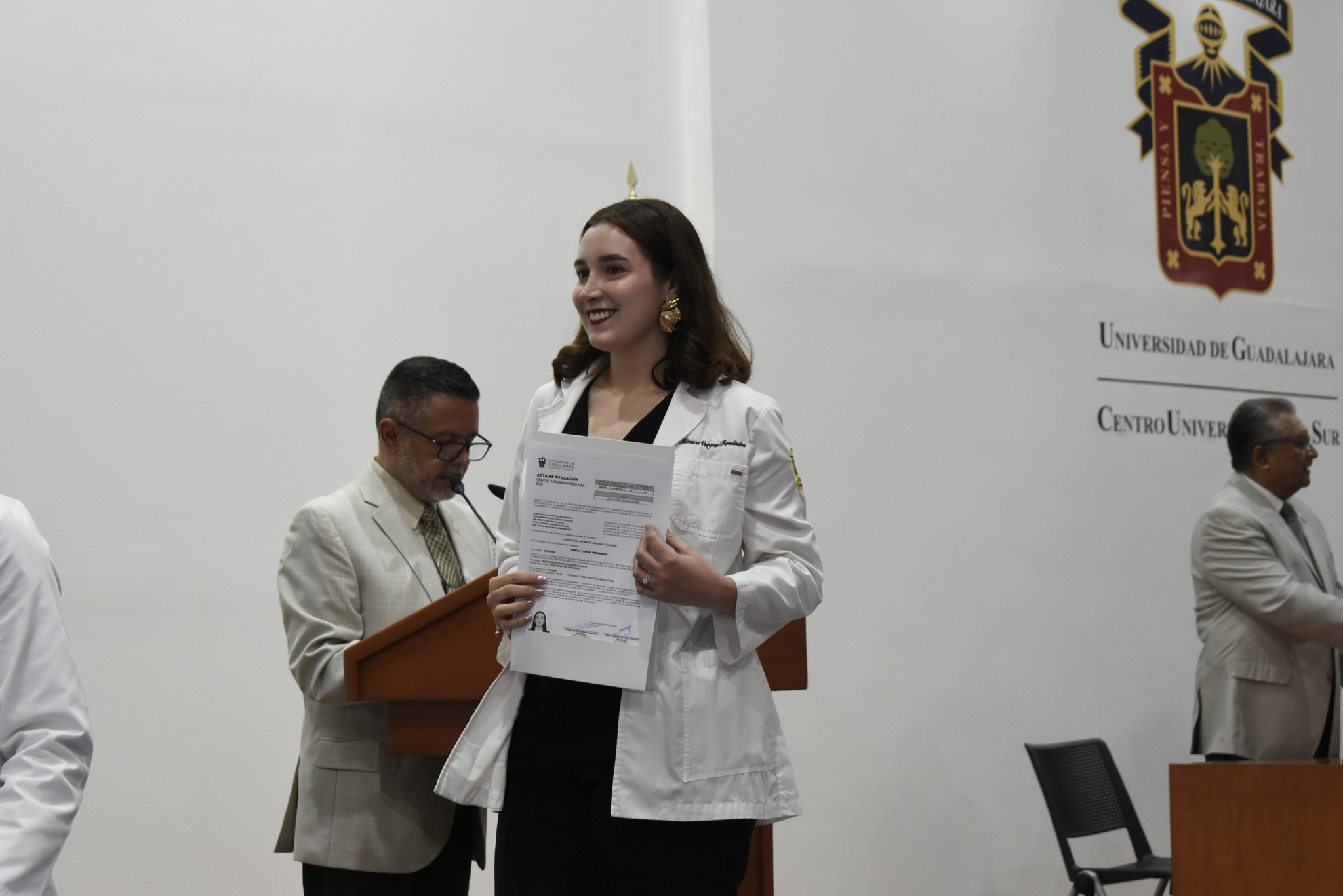 Durante su mensaje, el Rector Doctor Jaime Dante Haro Reyes destacó que, más allá de los conocimientos adquiridos, la Universidad de Guadalajara busca formar profesionales con valores, capaces de ejercer una ciudadanía comprometida y de generar un impacto positivo en la sociedad. Subrayó que cada disciplina, desde su propio ámbito, contribuye al desarrollo social y al bienestar colectivo.