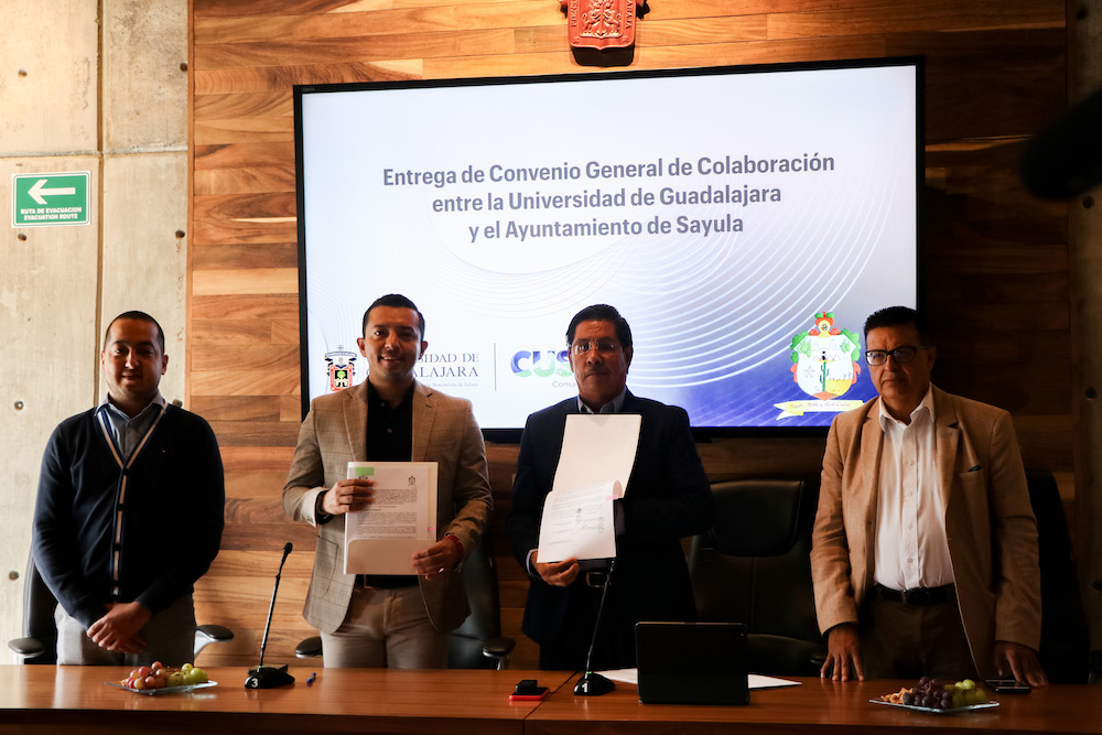En la Sala de Gobierno del Centro Universitario del Sur (CUSur), este 28 de septiembre se hizo entrega del Convenio General de Colaboración entre la Universidad de Guadalajara (UdeG) y el Ayuntamiento de Sayula, que tiene como objetivo mantener una vinculación interdisciplinaria entre el municipio y toda la Red Universitaria de la UdeG.