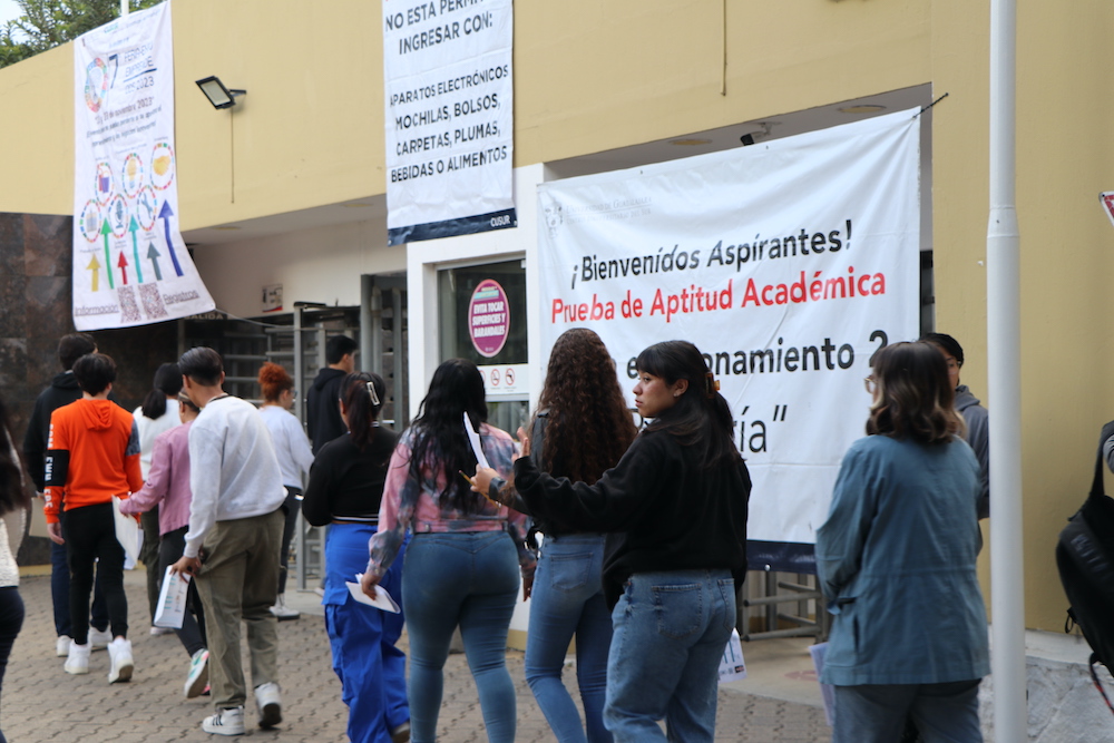 Este 11 de noviembre, los aspirantes a algún programa educativo del Centro Universitario del Sur (CUSur) presentaron la Prueba de Aptitud Académica en las instalaciones del centro. Acudieron mil 810 aspirantes de los mil 842 que se habían citado, un total del 98.26% para hacer el examen como parte del trámite de aspiración de ingreso al calendario 2024 A.