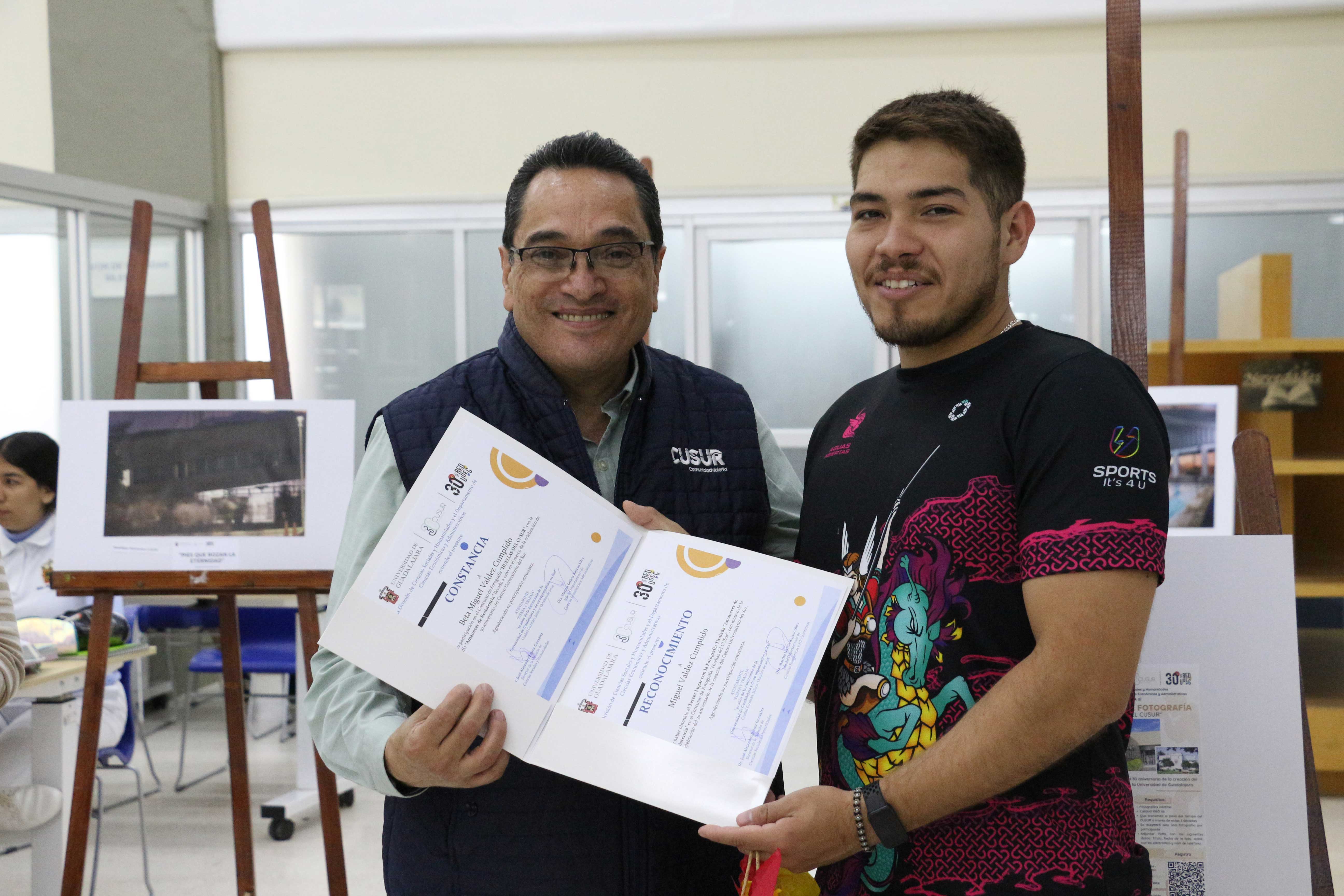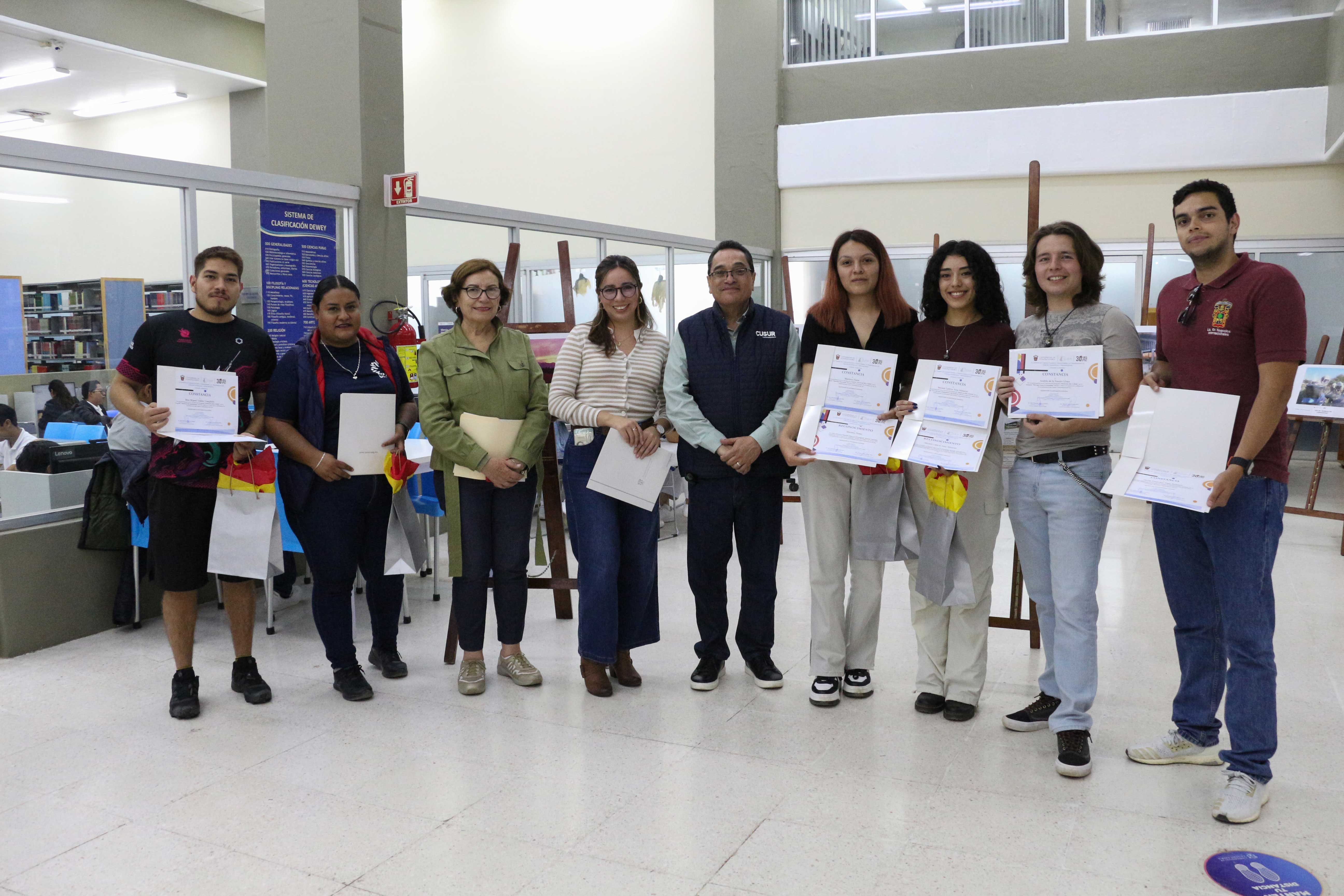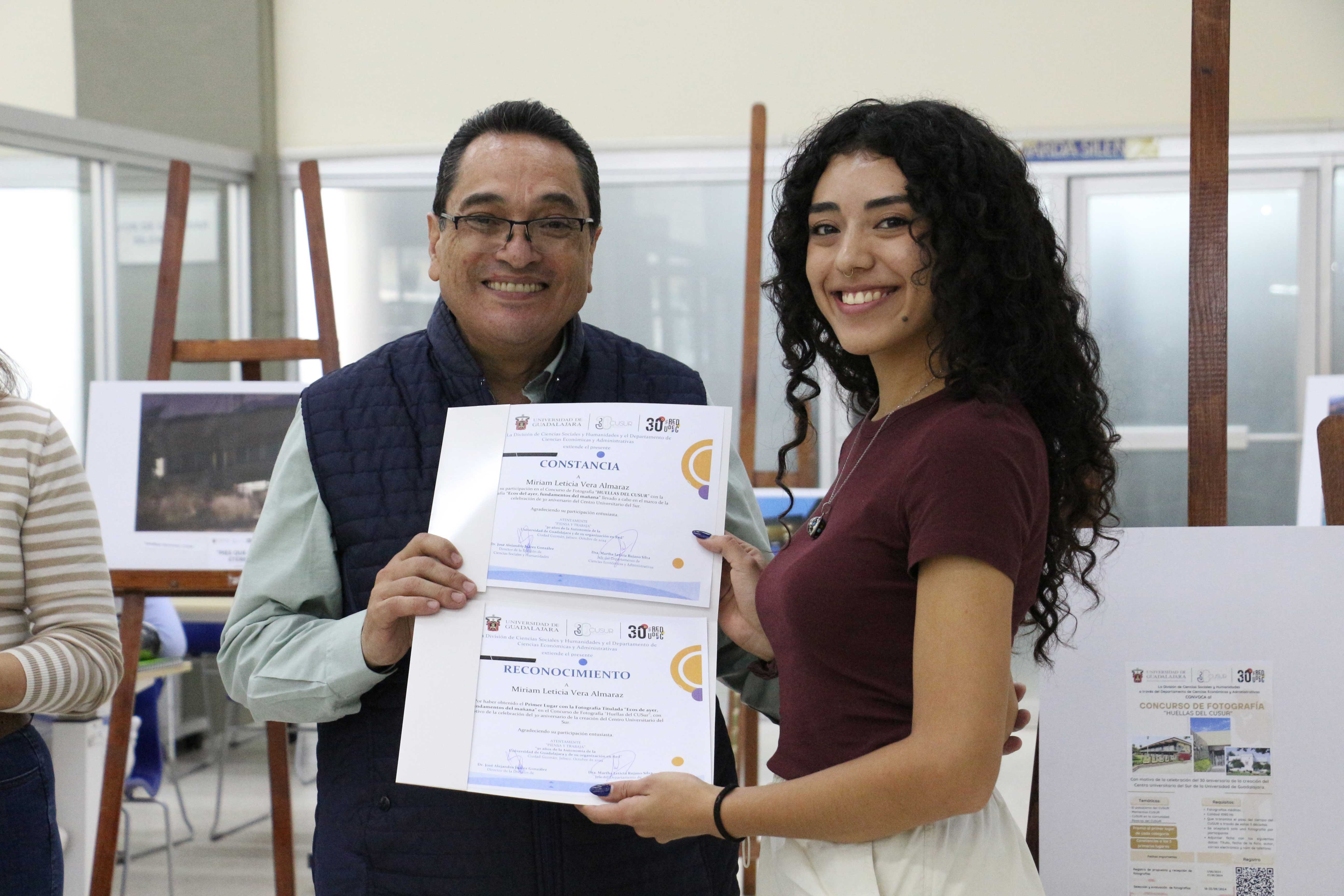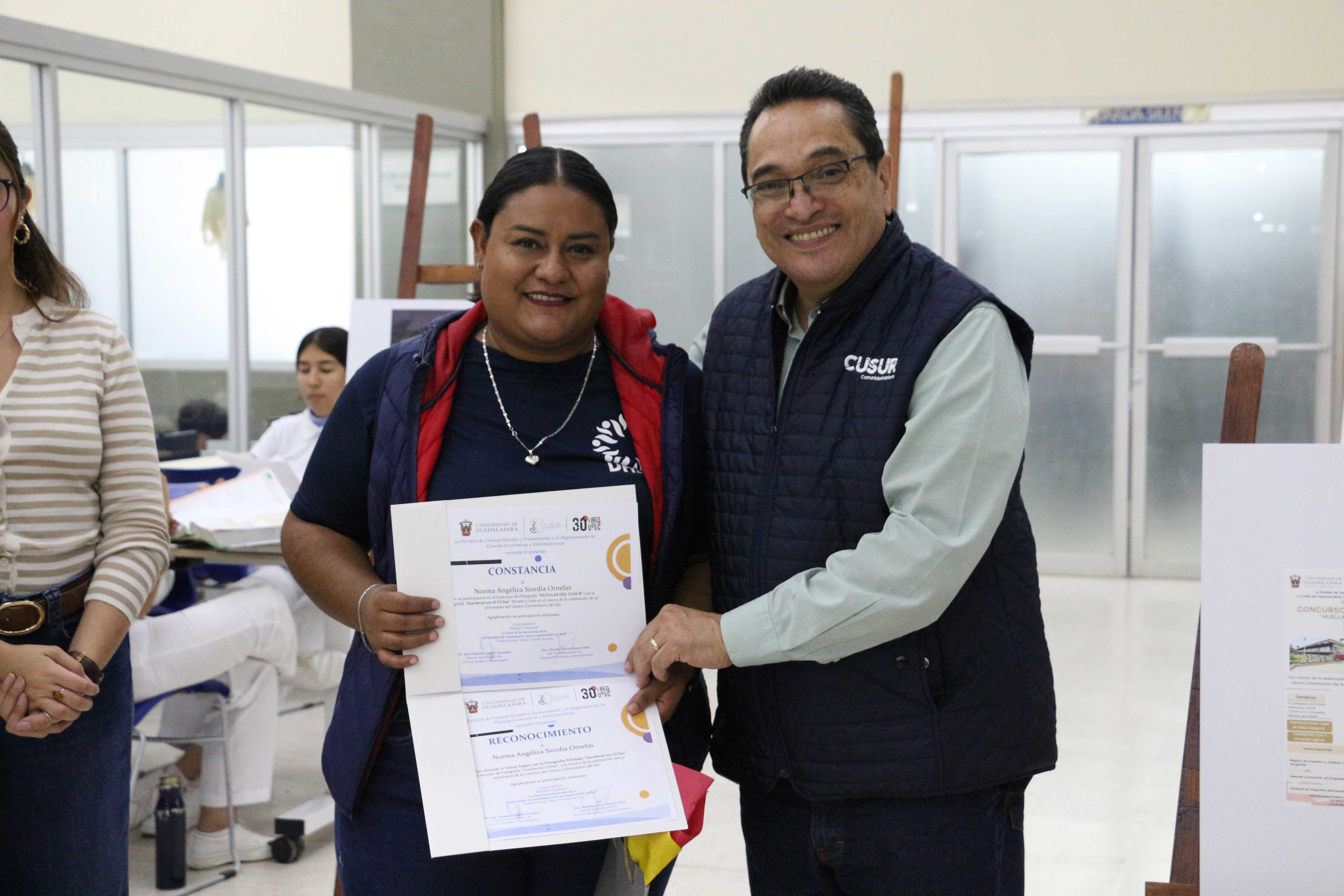 El 17 de octubre, en el marco del 30 aniversario del Centro Universitario del Sur (CUSur) y de la Red Universitaria de la Universidad de Guadalajara, se premió a los ganadores del concurso de fotografía “Huellas del CUSur 2024”. La ceremonia se llevó a cabo en el vestíbulo de la Biblioteca Hugo Gutiérrez Vega, con el objetivo de fortalecer la identidad entre la comunidad universitaria. Durante el evento, se entregaron constancias de participación y un detalle sorpresa a los tres primeros lugares.