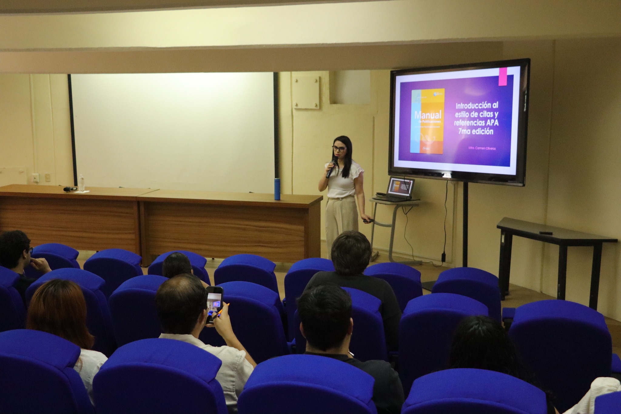 Para dar inicio formal al programa, la maestra Carmen Oliveros Sánchez, jefa de la Unidad de Biblioteca, impartió una introducción al uso del estilo de citación APA en su séptima edición. Subrayó la importancia de reconocer las fuentes de información que sustentan el trabajo científico. “Es un placer acompañarlos en su trayectoria académica. Cuando se emprende un proyecto de investigación se atraviesan diferentes etapas, y la primera es la planificación: saber qué investigar, cómo investigar y para qué”, explicó.