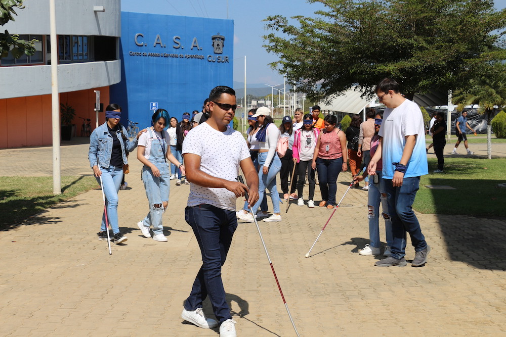 “Estrategias para la concientización a la comunidad universitaria, fomentando la inclusión de estudiantes con discapacidad visual” es un proyecto de los alumnos de la licenciatura en Trabajo Social, cuyo objetivo es difundir estrategias que logren la concientización a la comunidad del Centro Universitario del Sur (CUSur) en relación con la inclusión de alumnos con discapacidad visual.