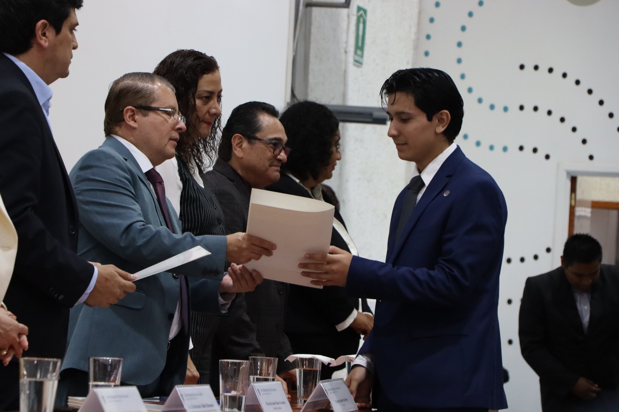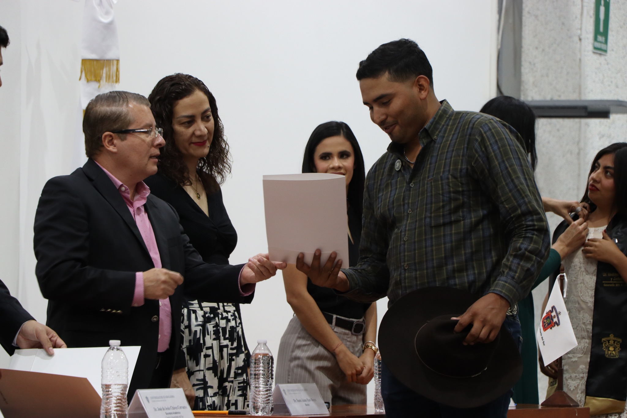 En representación de las y los titulados, Francisco Javier Uribe Torres, de la Licenciatura en Letras Hispánicas y Ángel de Jesús Hernández Zamudio, de la Licenciatura en Cultura Física y Deporte, dirigieron un mensaje a sus compañeras y compañeros; resaltaron que la graduación representa más que la obtención de un título: es la cristalización de un sueño construido con esfuerzo, desvelos, tropiezos y, sobre todo, con esperanza y determinación.