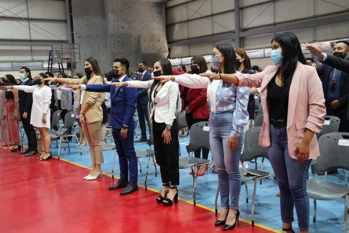 “No ha sido fácil, por eso reconozco a cada uno de ustedes por no rendirse, aun cuando casi dos años de su formación final se tuvo que ir a la virtualidad, creando condiciones diversas que pusieron a prueba su salud física y mental”, dijo Medina Legarreta al grupo de graduados, pidiendo un reconocimiento a sus familiares, a las personas que representaron el pilar para su desarrollo en la carrera.