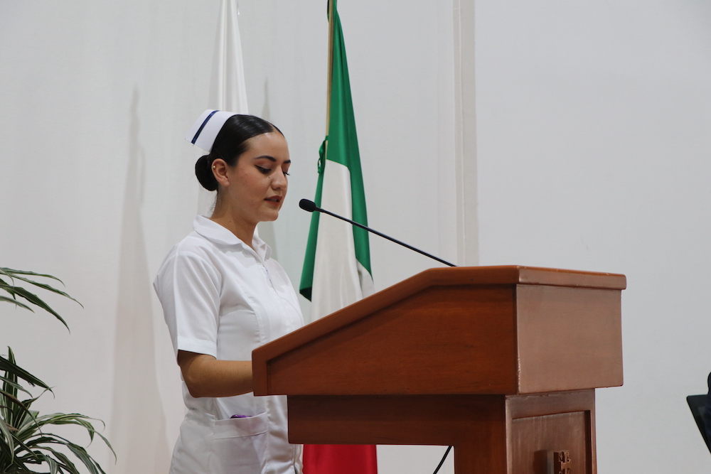 Blanca Lizeth Hernandez Chávez, egresada de la licenciatura en Enfermería, en representación de los titulados, agradeció a compañeros, profesores y familiares por el acompañamiento durante esta etapa tan importante que culmina: “El ingreso a la universidad nos ha marcado para bien, ahora poseemos una formación universitaria que se sustenta en conocimientos científicos, principios y valores humanísticos, en este sentido nos corresponde ser consecuentes y prestigiar a la universidad de la cual egresamos, donde vivimos la oportunidad de desarrollarnos en un ambiente de libertad”.