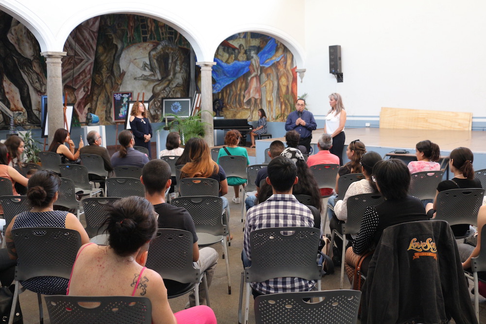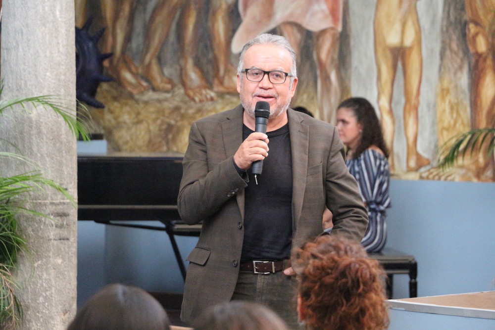 La maestra Laura De Luna, encargada de la Casa del Arte, habló de la historia de Froylán Díaz y compartió que en vida fue estudiante del Centro Universitario de Ciencias Económico Administrativas (CUCEA), se dedicó a crear obras y promover el respeto a los derechos humanos de las personas con discapacidad.