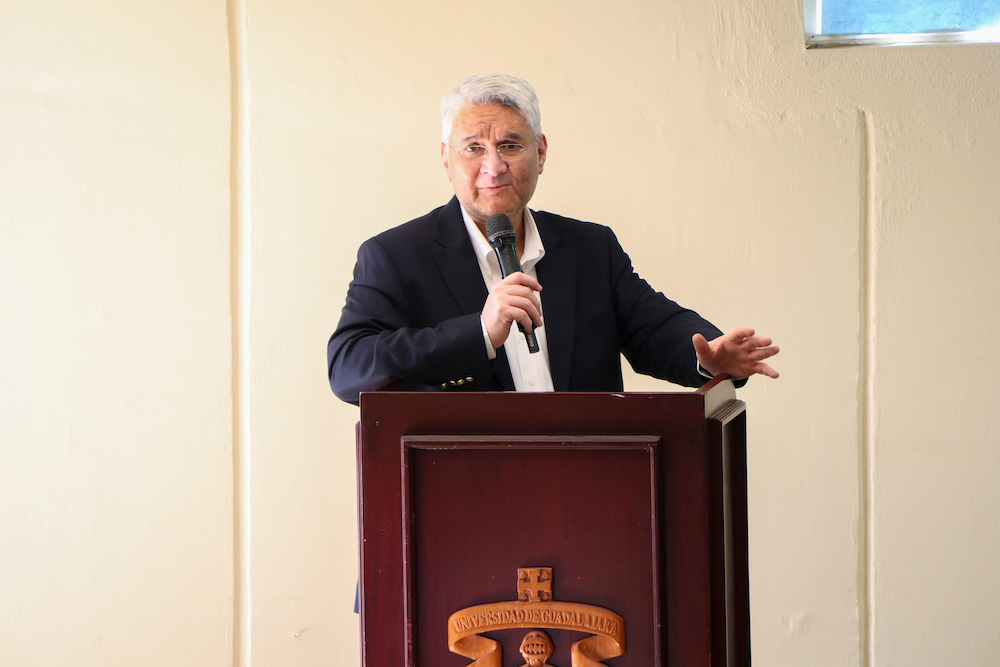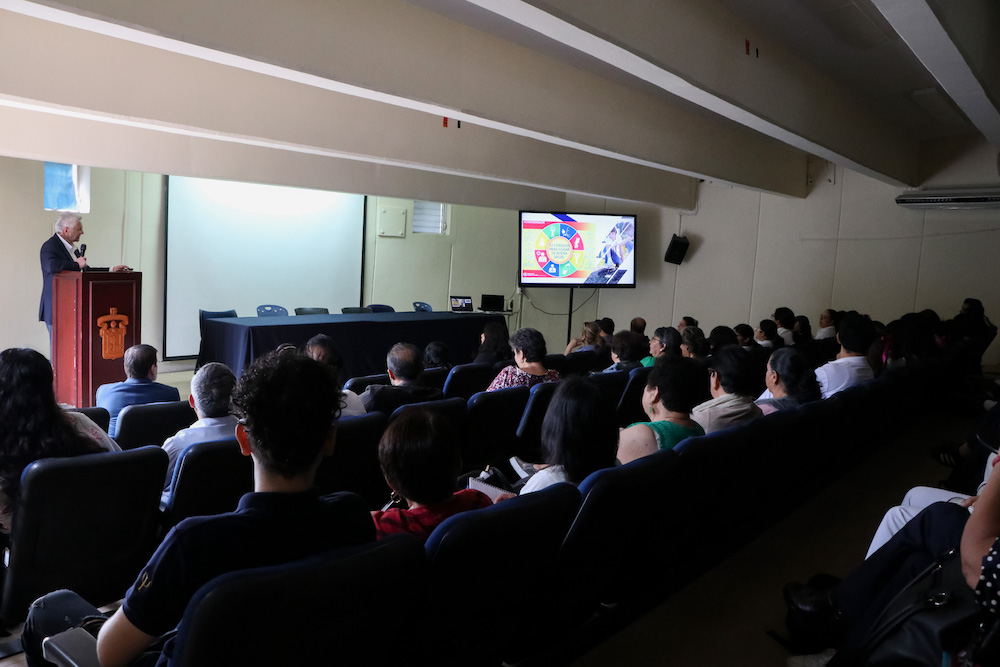 El evento comenzó con la conferencia magistral “Ambiente y cerebro”, impartida por el doctor Rodrigo Ramos Zúñiga, Secretario Técnico de la Comisión Estatal de Bioética de Jalisco de la Secretaría de Salud. Durante su intervención, resaltó la relevancia del cerebro en su entorno, haciendo especial énfasis en los ambientes globales y microambientes que son determinantes para entender por qué las neuronas, células y redes neuronales dependen tanto de ellos y mantienen una interacción funcional, así como una simbiosis con los diferentes entornos de su medio ambiente, incluyendo el cerebro y los ecosistemas. Además, abordó algunos aspectos vinculados, como la plasticidad.