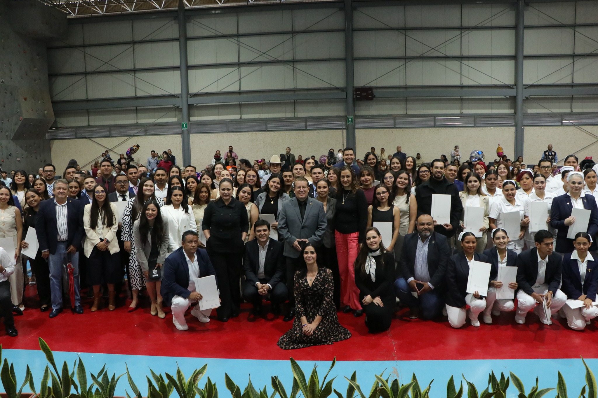 Asimismo, destacó la relevancia de las carreras del área de la salud como pilares esenciales para el bienestar de la población. Subrayó que profesiones como Enfermería, Psicología, Medicina Veterinaria, Nutrición y Protección Civil no solo contribuyen al desarrollo regional, sino que son fundamentales para garantizar la salud pública, la seguridad comunitaria y la construcción de un futuro más justo y saludable para todas y todos: “Hoy más que nunca, nuestro país requiere profesionistas comprometidos con el cuidado de la vida, el bienestar emocional, la salud mental, la nutrición adecuada y la prevención de riesgos. Ustedes son parte esencial de ese cambio”, añadió el doctor Haro Reyes.