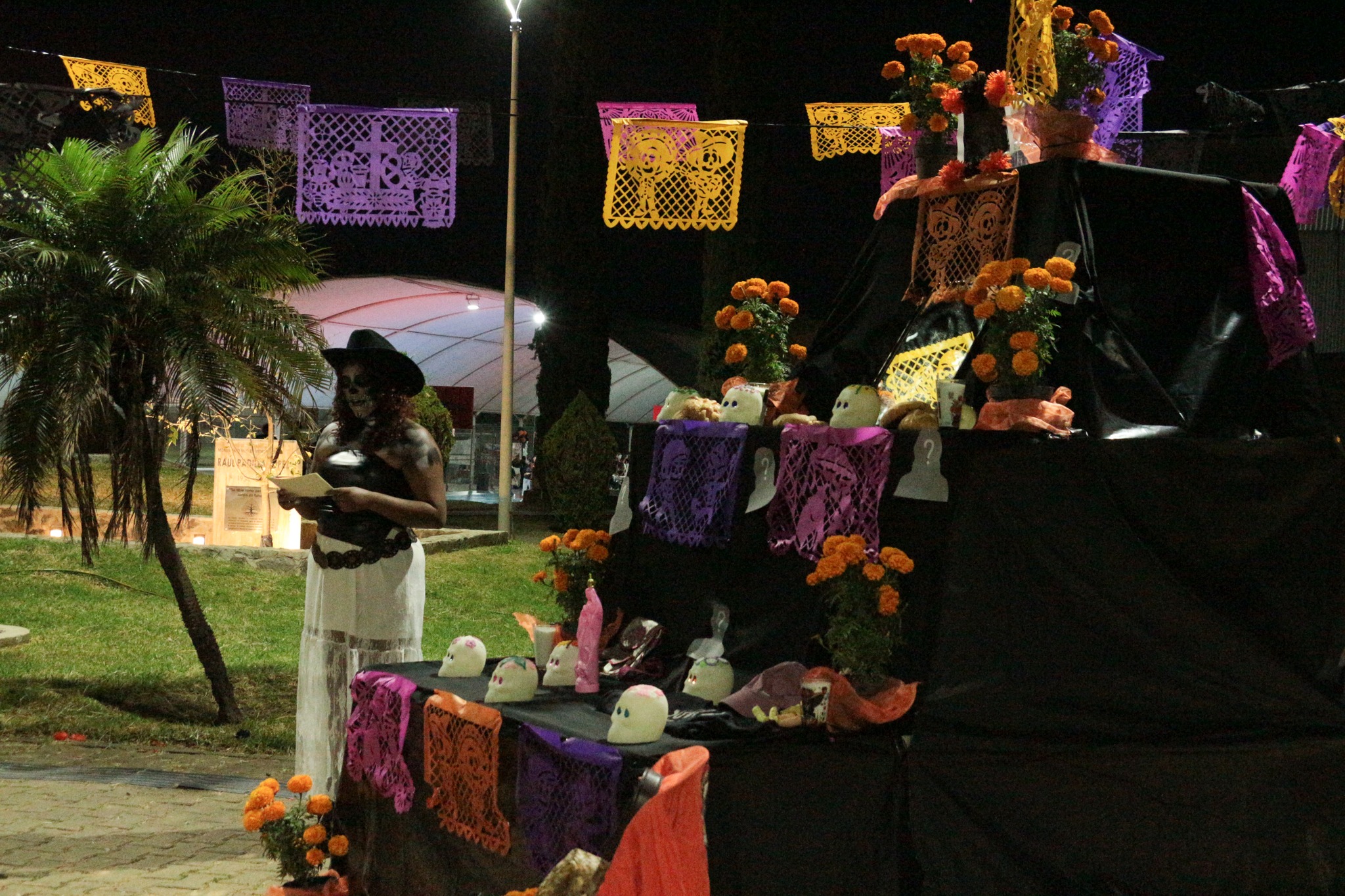 El maestro Alfredo Tomás Ortega Ojeda, jefe del Departamento de Artes y Humanidades, recordó que este festival se realiza desde 2007, incluso antes de que la UNESCO reconociera al Día de Muertos como Patrimonio Cultural Inmaterial de la Humanidad, destacó la labor de estudiantes y docentes que han mantenido viva la tradición a lo largo de los años.
