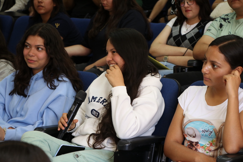 La alumna Azul Cristina Cueva García, en representación de los alumnos de noveno semestre de Psicología, señaló que el tema de este coloquio tiene como objetivo concientizar a las personas sobre el impacto que tiene esta modalidad en el comportamiento, las posibles consecuencias y las mejores formas de manejo. Dijo que esta modalidad ha repercutido en las generaciones actuales de manera positiva, en el aspecto de la facilidad que se tiene para mantener la comunicación, pero también de manera negativa, considerando que suele pasarse por alto la búsqueda de compromiso y la importancia de estar.