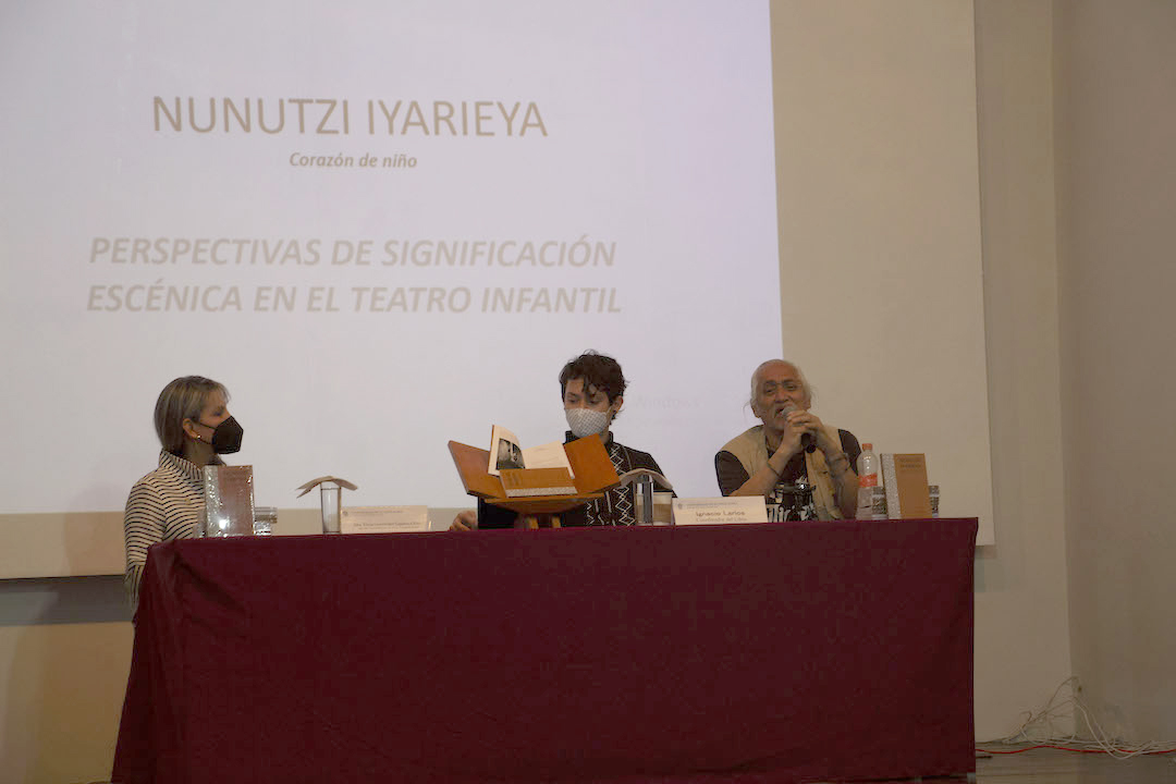 Ese mismo día se presentó el libro Nunutzi Iyarieya, perspectivas de significación escénica en el teatro infantil, del autor Ignacio Larios, quien explicó los estudios a manera de investigación que realizó para entender a los niños y las aportaciones del desarrollo artístico a partir de edades cortas. Mencionó que el teatro ha funcionado a manera de expresión de sentimientos y emociones para todo tipo de público con su facilidad de presentación en cualquier tipo de lugares, es por ello que se ha podido considerar como una nueva manera de comunicación en las comunidades a las que llega el teatro.