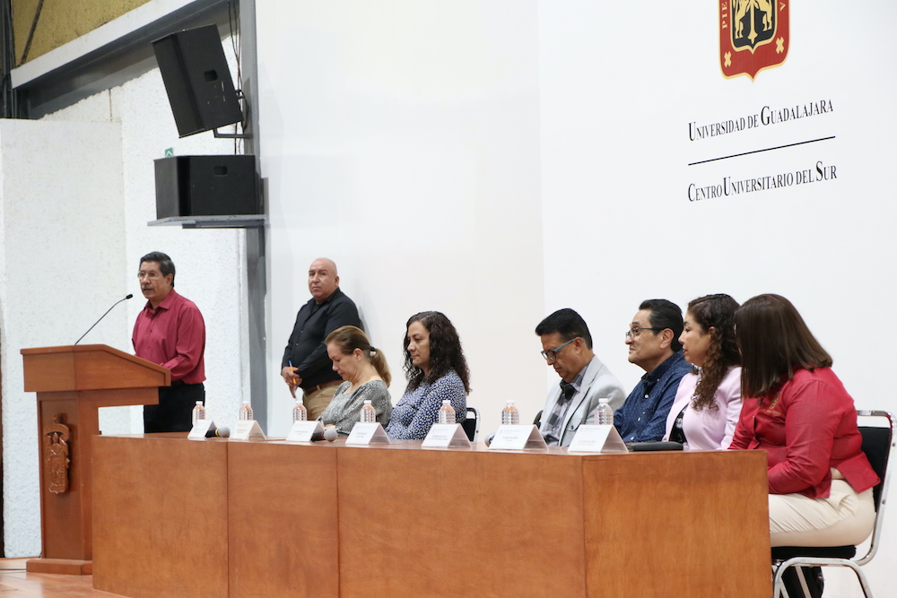 La ceremonia estuvo presidida por el doctor José Guadalupe Salazar Estrada, Rector del Centro Universitario del Sur; en presídium estuvieron también el doctor Andrés Valdez Zepeda, Secretario Académico; la maestra Mariana Elizabeth Domínguez Cobián, Secretaría Administrativa; el doctor José Alejandro Juárez González, Director de la División de Ciencias Sociales y Humanidades; la doctora Evangelina Elizabeth Lozano Montes de Oca, Jefa del Departamento Ciencias Sociales y la maestra Lydia Karen Chávez Saldaña, Coordinadora de la licenciatura en Trabajo Social.