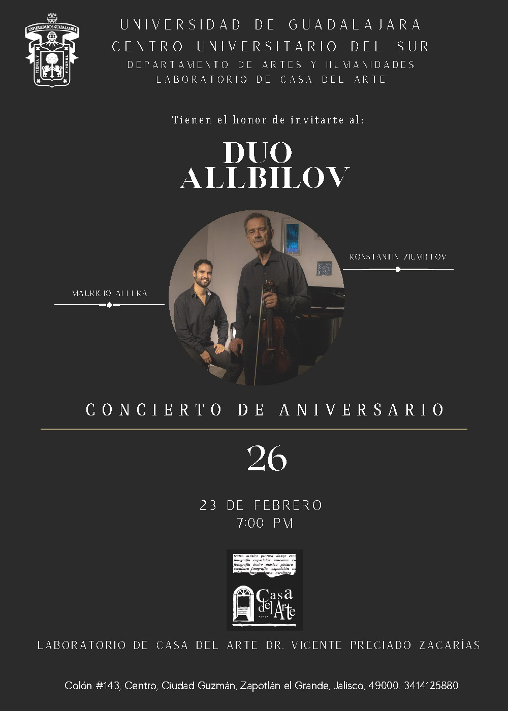 Como parte de la celebración, el próximo 23 de febrero, a las 19:00 horas, se llevará a cabo un recital musical con la presencia de Mauricio Allera y Konstantini Ziumbilov