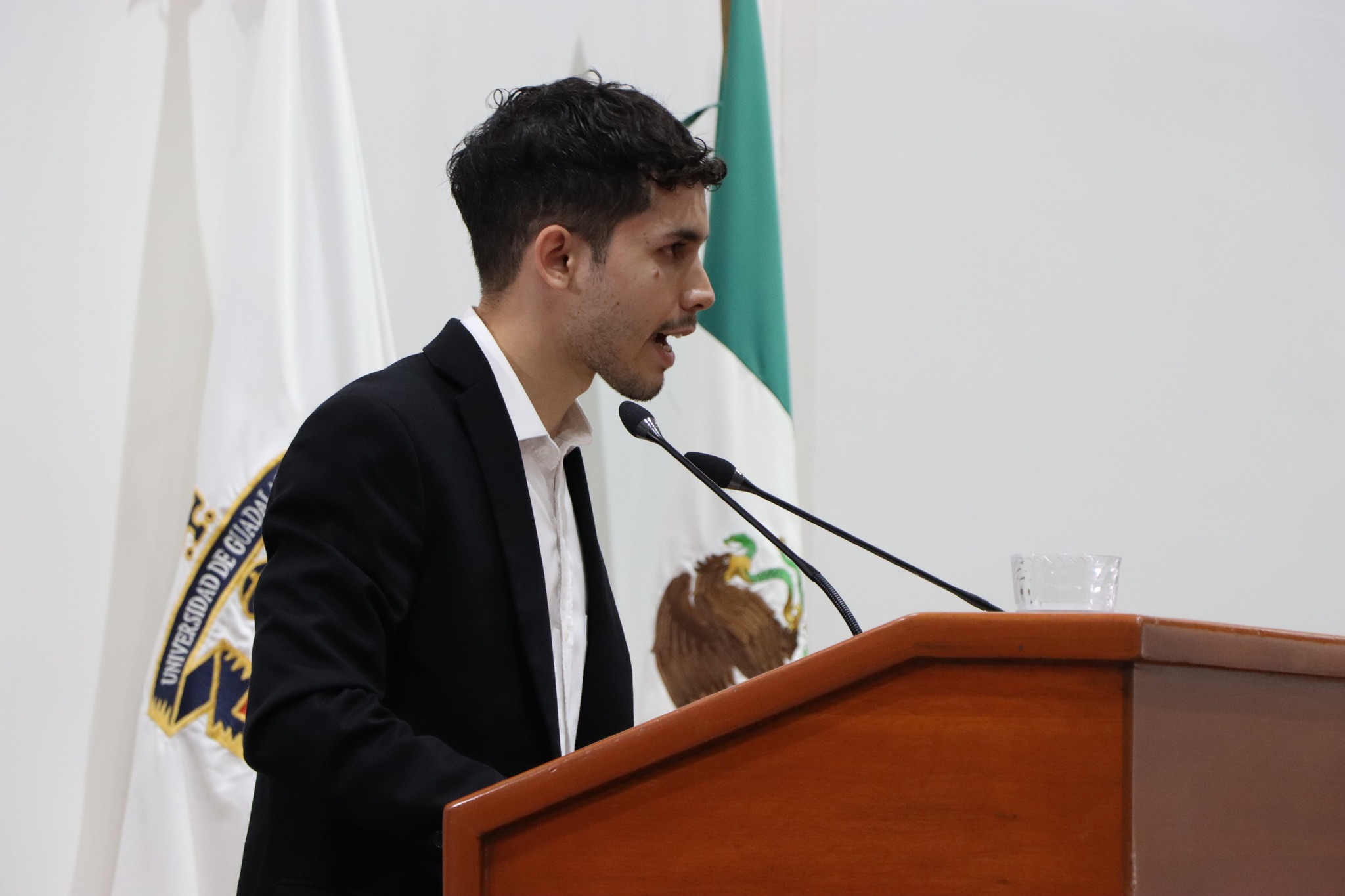Durante su mensaje, el Rector Doctor Jaime Dante Haro Reyes destacó que, más allá de los conocimientos adquiridos, la Universidad de Guadalajara busca formar profesionales con valores, capaces de ejercer una ciudadanía comprometida y de generar un impacto positivo en la sociedad. Subrayó que cada disciplina, desde su propio ámbito, contribuye al desarrollo social y al bienestar colectivo.