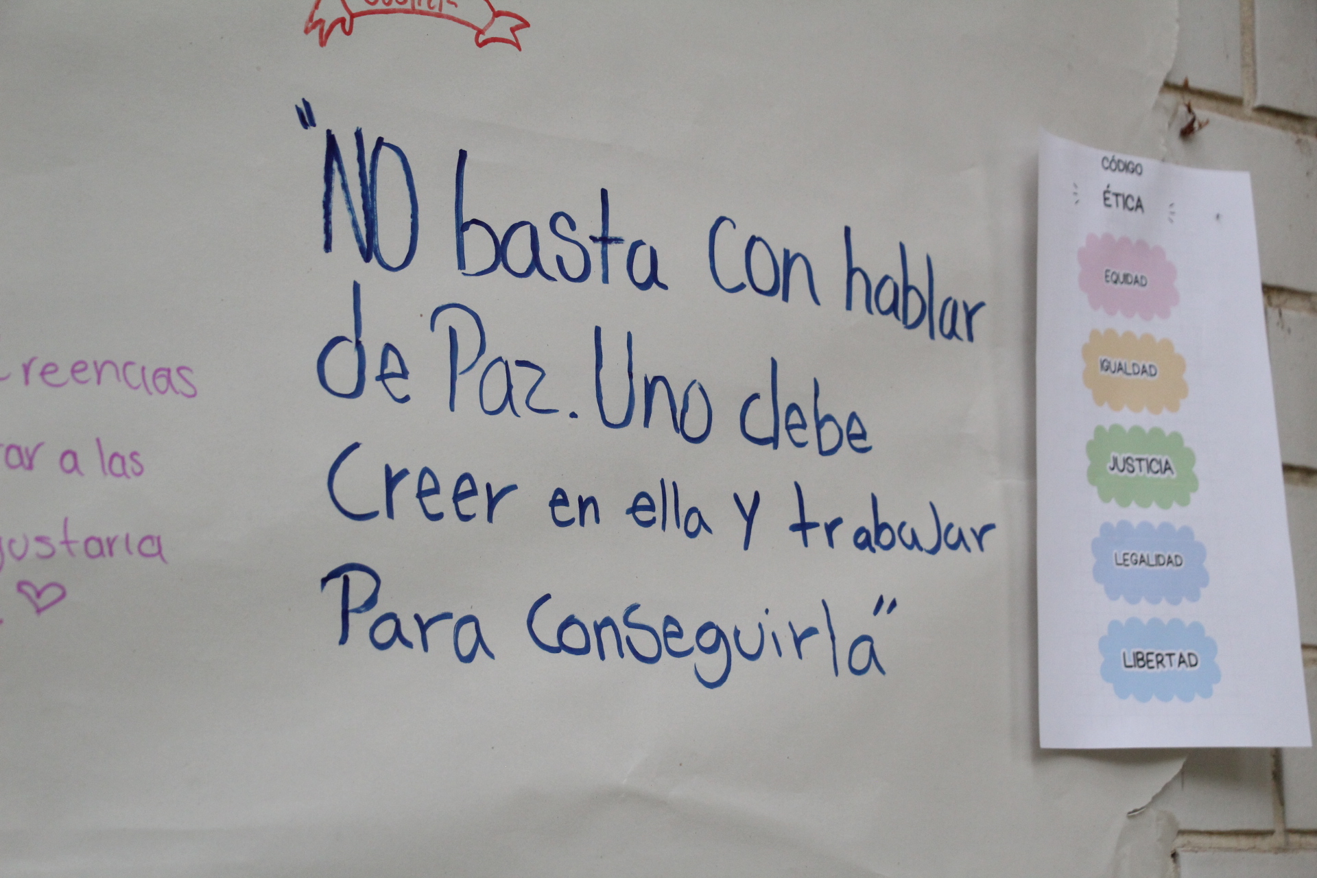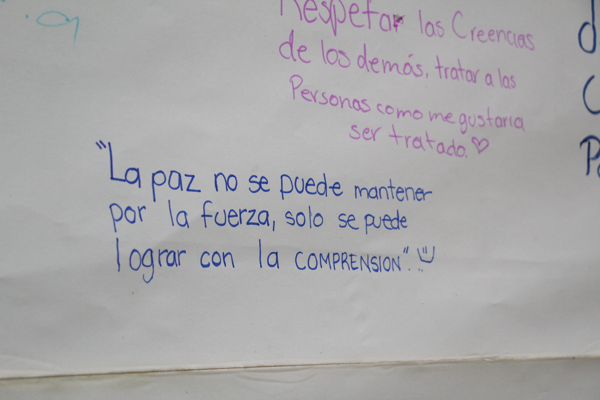 El propósito principal de estas actividades es invitar a los jóvenes a reflexionar sobre su comportamiento durante las celebraciones, fomentando la responsabilidad y la paz. Entre las dinámicas destacan la elección de imágenes con frases alusivas a la paz, así como la invitación a escribir mensajes en un cartelón, generando un ambiente de creatividad y reflexión.