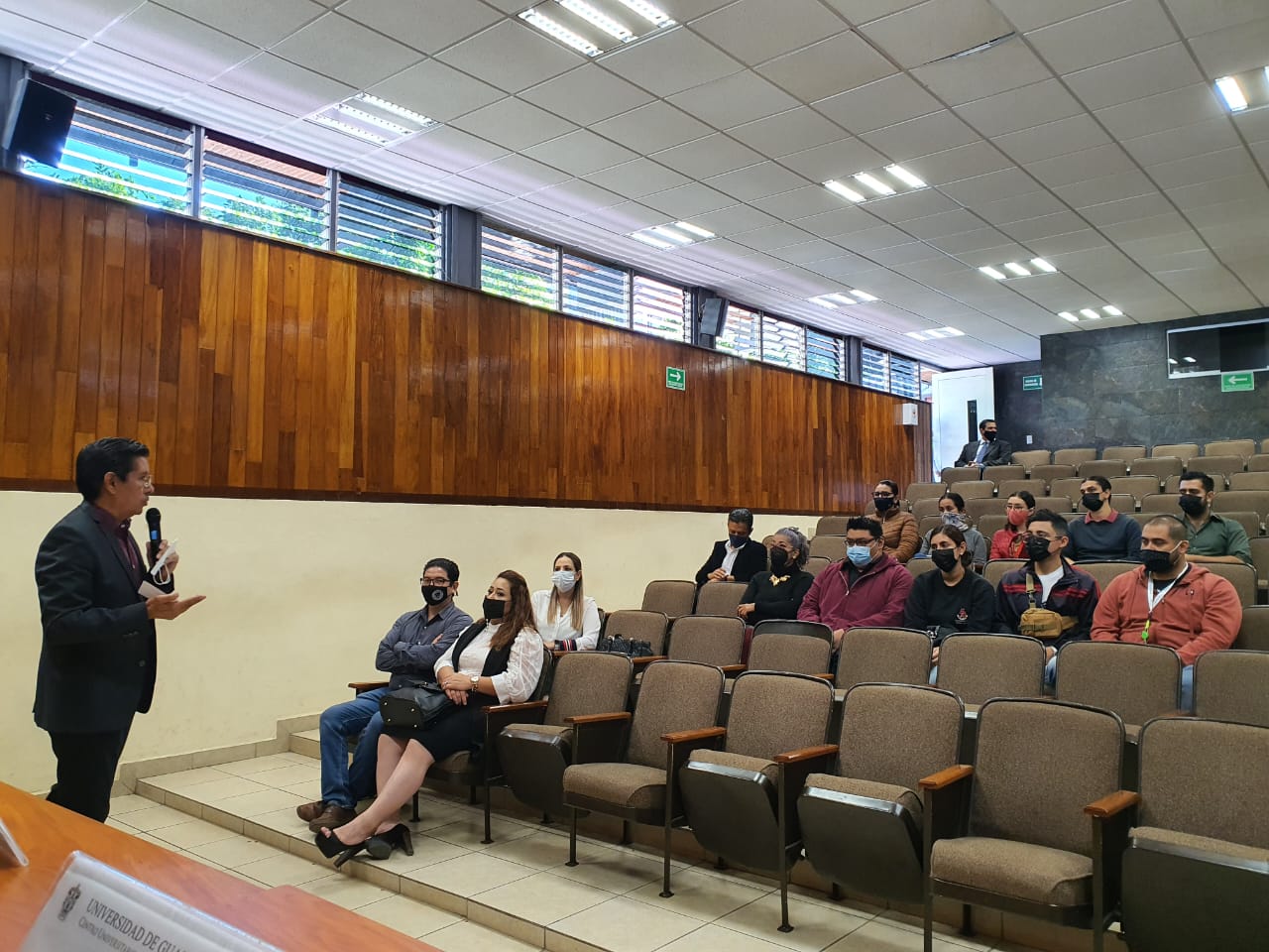 En esta charla estuvieron presentes el doctor José Guadalupe Salazar Estrada, Rector del CUSur; el doctor Andrés Valdez Zepeda, Secretario Académico; la maestra Mariana Elizabeth Domínguez Cobián, Secretaria Administrativa; y los directores de división: la doctora María Cristina López de la Madrid, el doctor José Alejandro Juárez González y la maestra Berenice Sánchez Caballero.