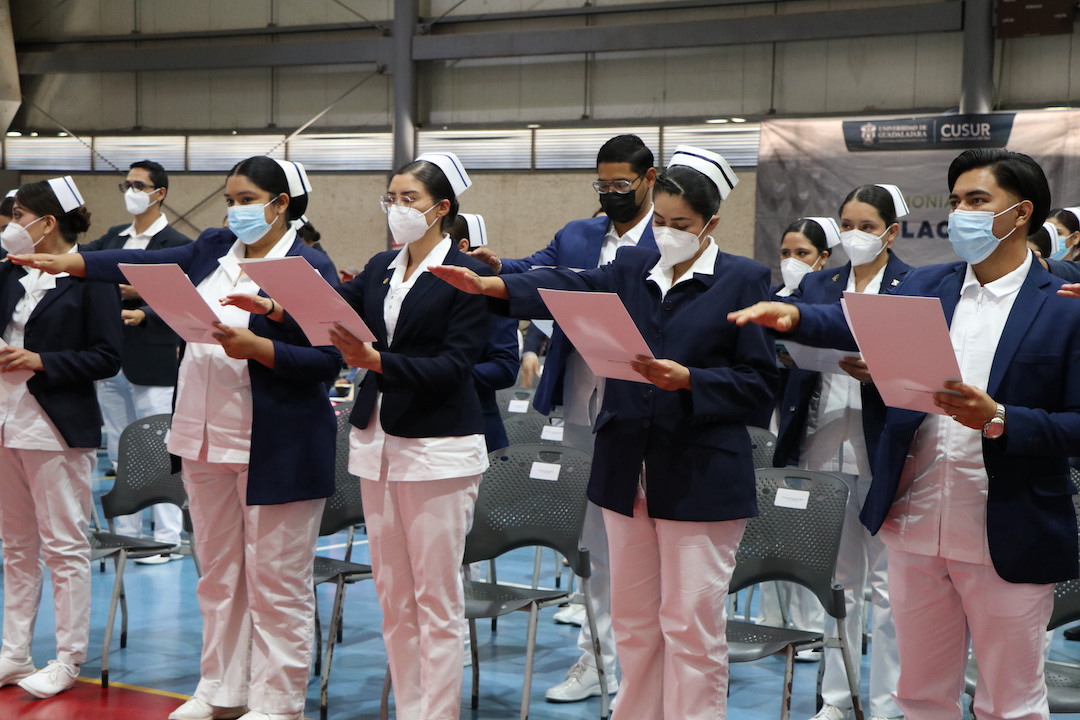 Los actos estuvieron presididos por el doctor Jorge Galindo García, Rector del CUSur, quien cedió la voz a dos académicas de las áreas de la salud para que tomaran protesta a los respectivos graduados de cada ceremonia.