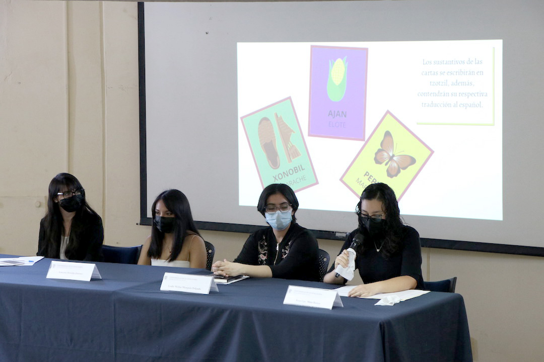 Posteriormente se llevó a cabo la presentación de tres propuestas de proyectos para la conservación de las lenguas originarias, donde Azucena Heredia Jiménez, Rosa Guadalupe Mata Ramos, Leslie Melisa Munguía Delgado, estudiantes de la carrera de Letras Hispánicas del CUSur, junto con la maestra Carmen Oliveros Sánchez, profesora de la misma carrera, expusieron el aporte a la conservación de dichas lenguas que los proyectos proponen.