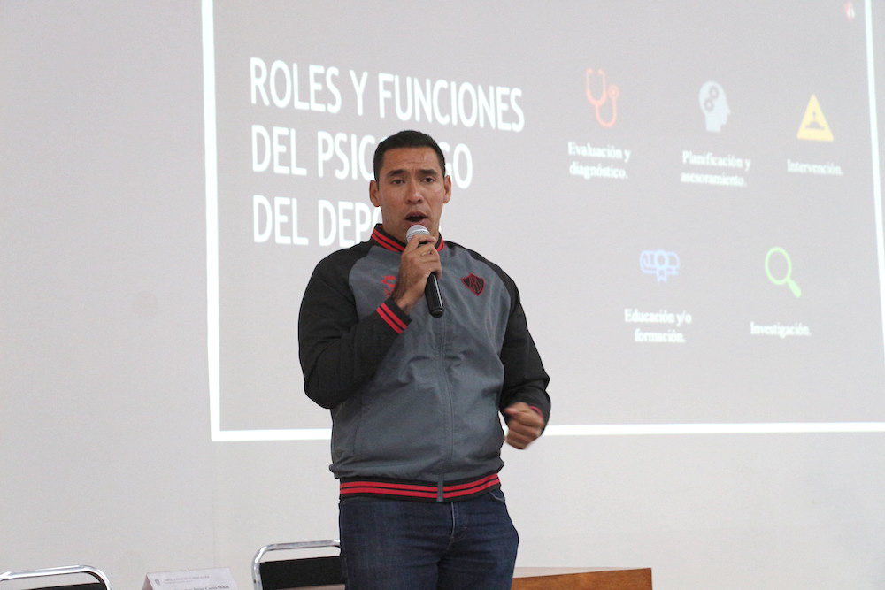 Valdez Zepeda agradeció a los ponentes por hablar sobre la importancia de esta subespecialidad de la psicología. Asimismo, detalló que la psicología del deporte estudia los procesos psíquicos y conductuales de los deportistas con el fin de motivar a los jugadores y atletas, mejorar el rendimiento y el potencial deportivo, inculcar una mística de éxito, mejorar la disciplina, el bienestar psicológico de los deportistas, manejo de estrés, y la concentración y generación de autoconfianza.