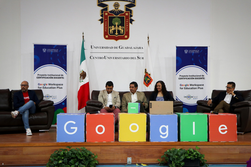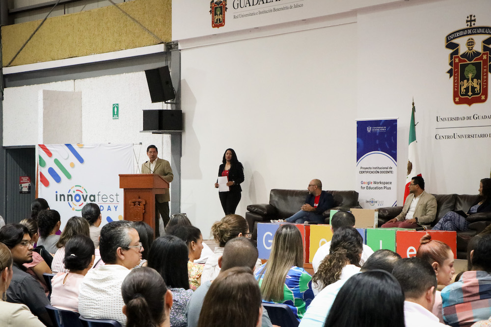 En el Auditorio Adolfo Aguilar Zínser del Centro Universitario del Sur (CUSur) se realizó el Innova Fest Day, cuyo objetivo es que los docentes universitarios y de nivel medio superior puedan desarrollar sus habilidades digitales mediante el uso de Google Workspace for Education Plus.