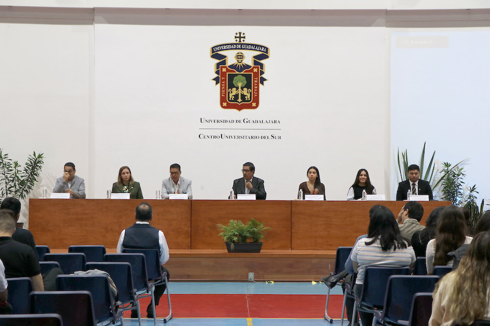 Este 04 de septiembre dieron inicio las jornadas de actualización jurídica del programa educativo de Abogado. El evento se realizó en el auditorio Adolfo Aguilar Zínser del Centro Universitario del Sur (CUSur). En el presídium estuvieron presentes el doctor José Guadalupe Salazar Estrada, Rector del CUSur; el doctor Andrés Valdez Zepeda, Secretario Académico; el doctor José Alejandro Juárez González, Director de la División de Ciencias Sociales y Humanidades; la doctora Evangelina Elizabeth Lozano Montes de Oca, Jefa del Departamento de Ciencias Sociales; el maestro Juan Carlos Jiménez Mejines, Coordinador de la carrera de Abogado; así como Miriam Abril Villaseñor Guerrero y Karla Isabel Barajas Cuevas, presidenta y vicepresidenta de la carrera.