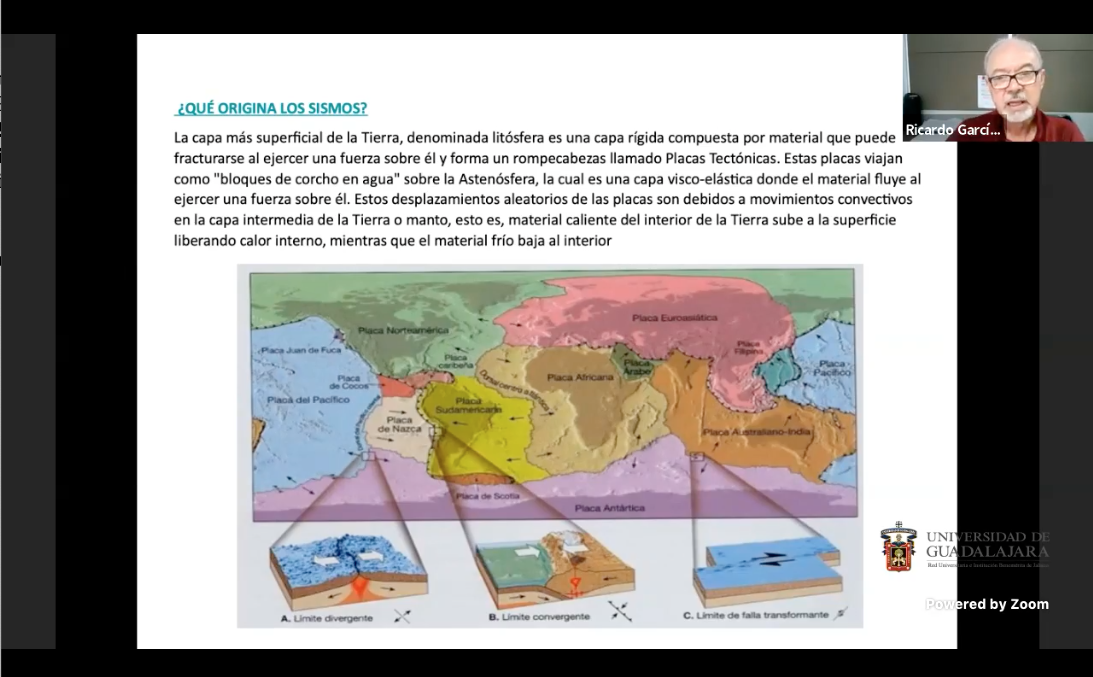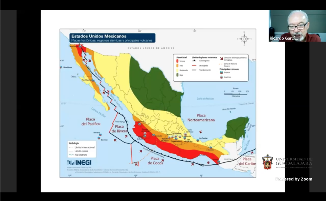 La conferencia con la que se abrió el ciclo, titulada “Los sismos en México: historia, situación actual y perspectiva”, fue impartida por el maestro Ricardo García de Alba García, profesor investigador del CUSur. El ciclo consta de una conferencia virtual impartida cada martes a las 18:00 horas a través de la cuenta de Facebook Live del CUSur.