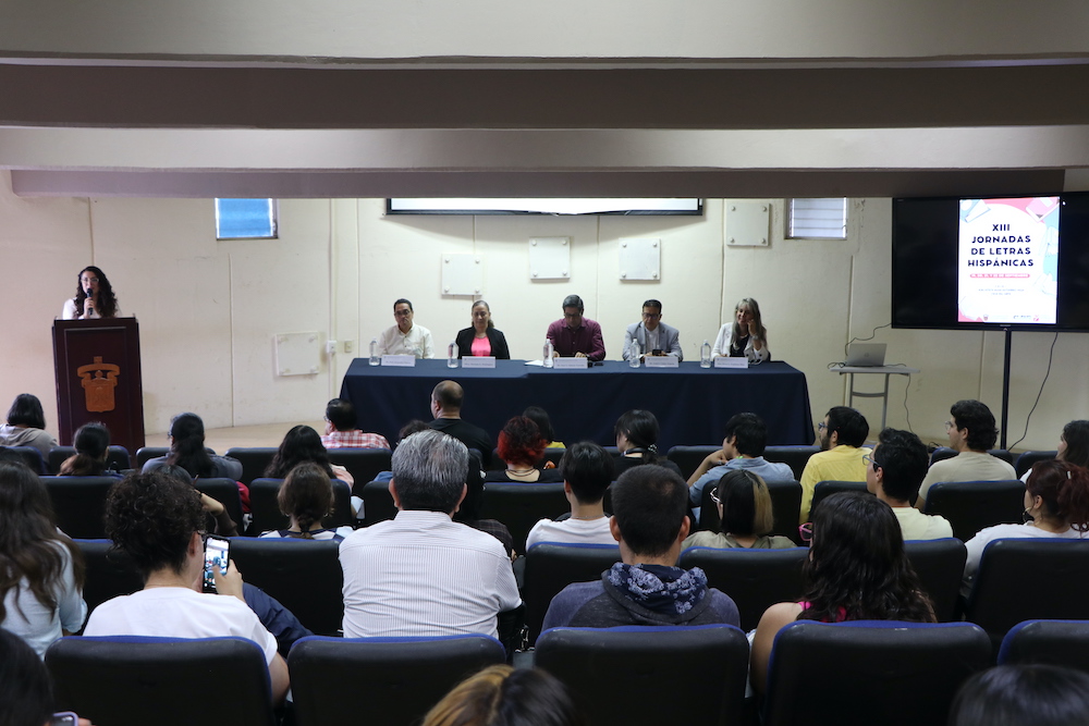 Antes de escuchar las palabras del rector dirigidas a los estudiantes, la maestra Claudia Vázquez, coordinadora de la carrera, afirmó que el objetivo de las jornadas “es propiciar el diálogo entre nuestra comunidad académica y los profesionales de las letras que conforman el panorama de la investigación, pero también de la creación literaria en nuestro país”.