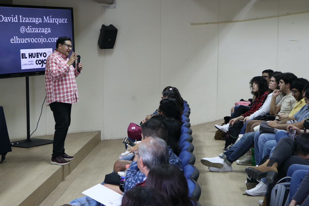 Izazaga dedicó esta conferencia a la crónica, género al que se ha entregado por muchos años y que considera su mayor pasión. “Siempre encuentro mucho desconocimiento al respecto de la crónica”, afirma David, pues constantemente se le confunde a la crónica con periodismo y, aunque el periodismo tiene un género de crónica, es un gran error etiquetarlo de esa manera. “Cuando el periodismo apenas iba por la leche, la crónica ya tenía sus quesos”, pues “la crónica es un género antiguo” que narra y describe un suceso. Finalmente, David Izazaga declaró que este género “es un cuento que es verdad”.