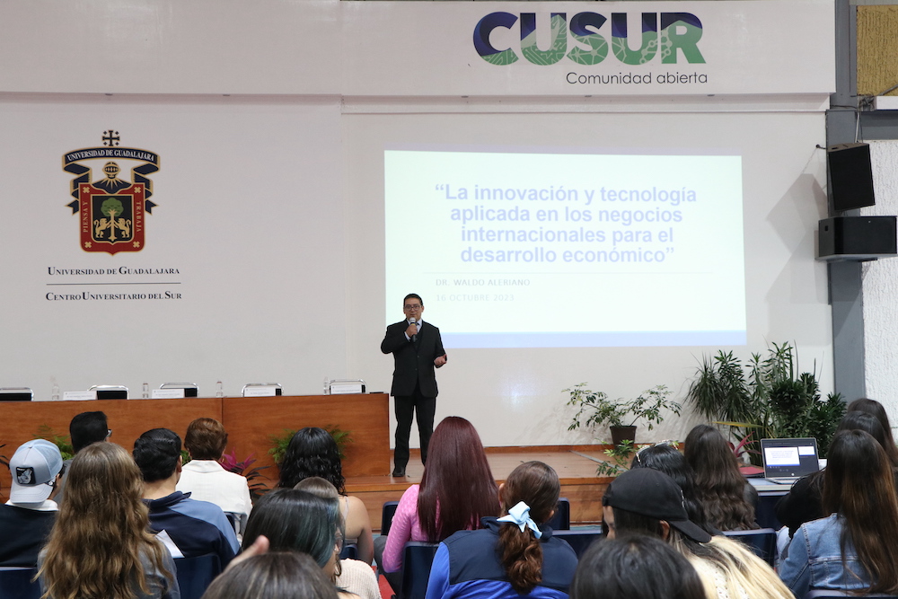 Con el lema “Innovación, inteligencia y tecnologías aplicadas a los negocios internacionales”, este 16 de octubre iniciaron las XIX Jornadas académicas de la licenciatura en Negocios Internacionales del CUSur, en el auditorio Adolfo Aguilar Zínser del Centro Universitario del Sur (CUSur).