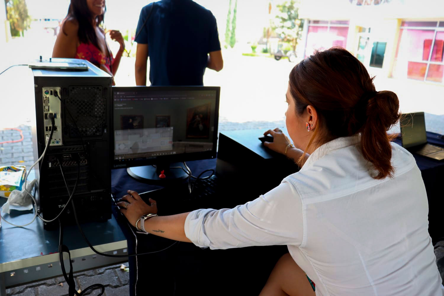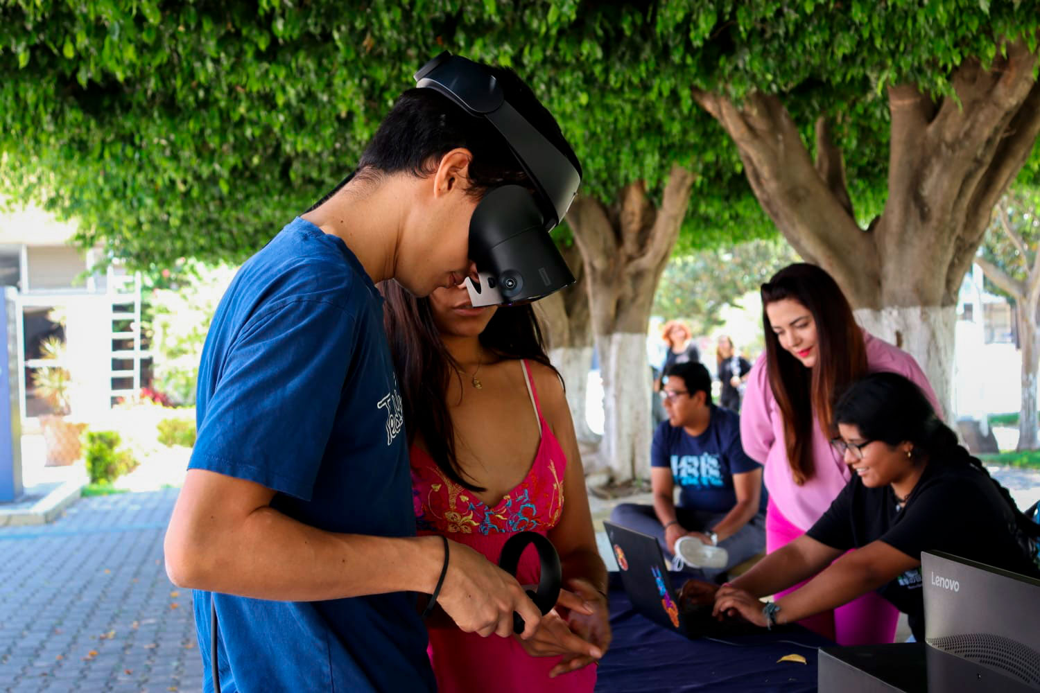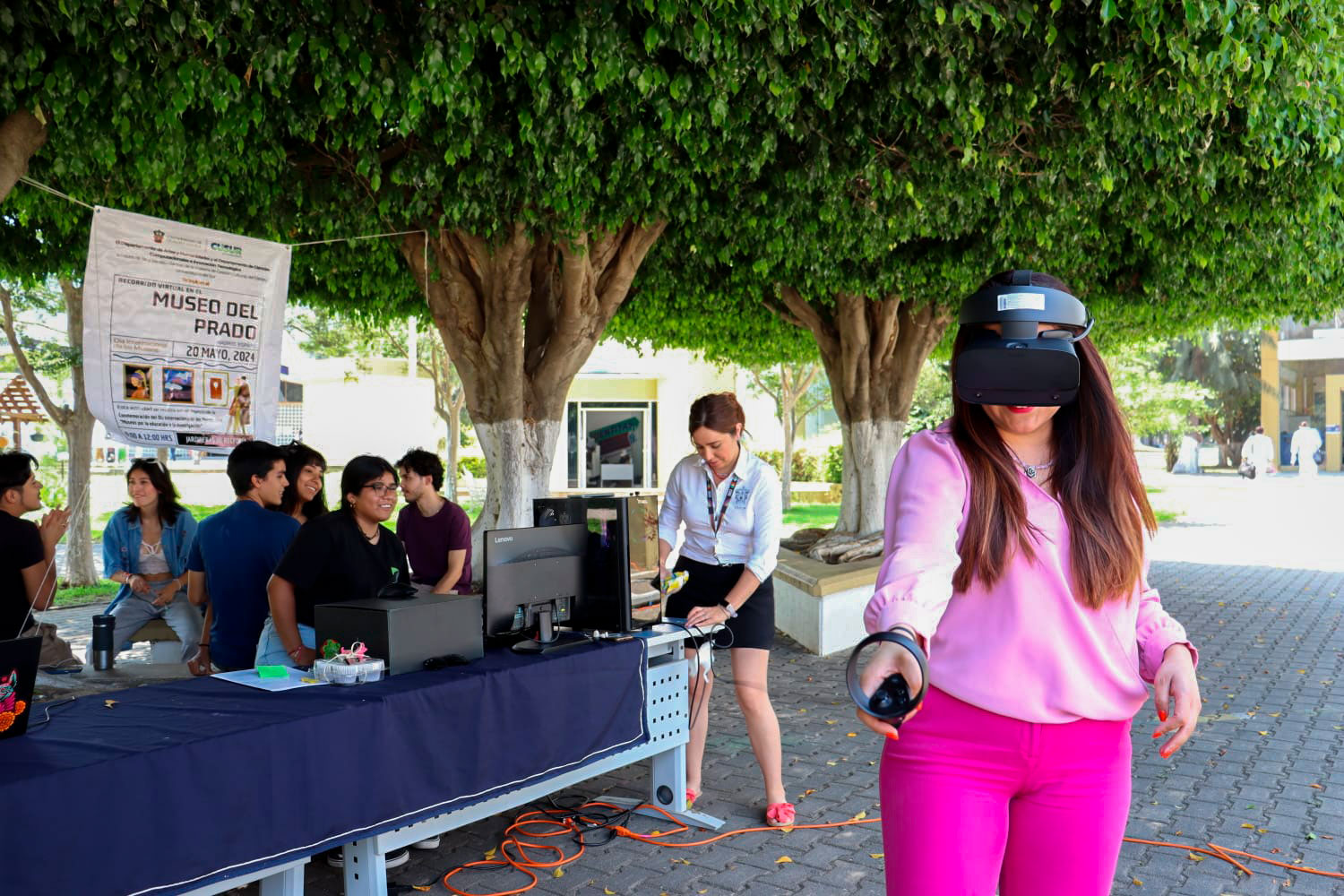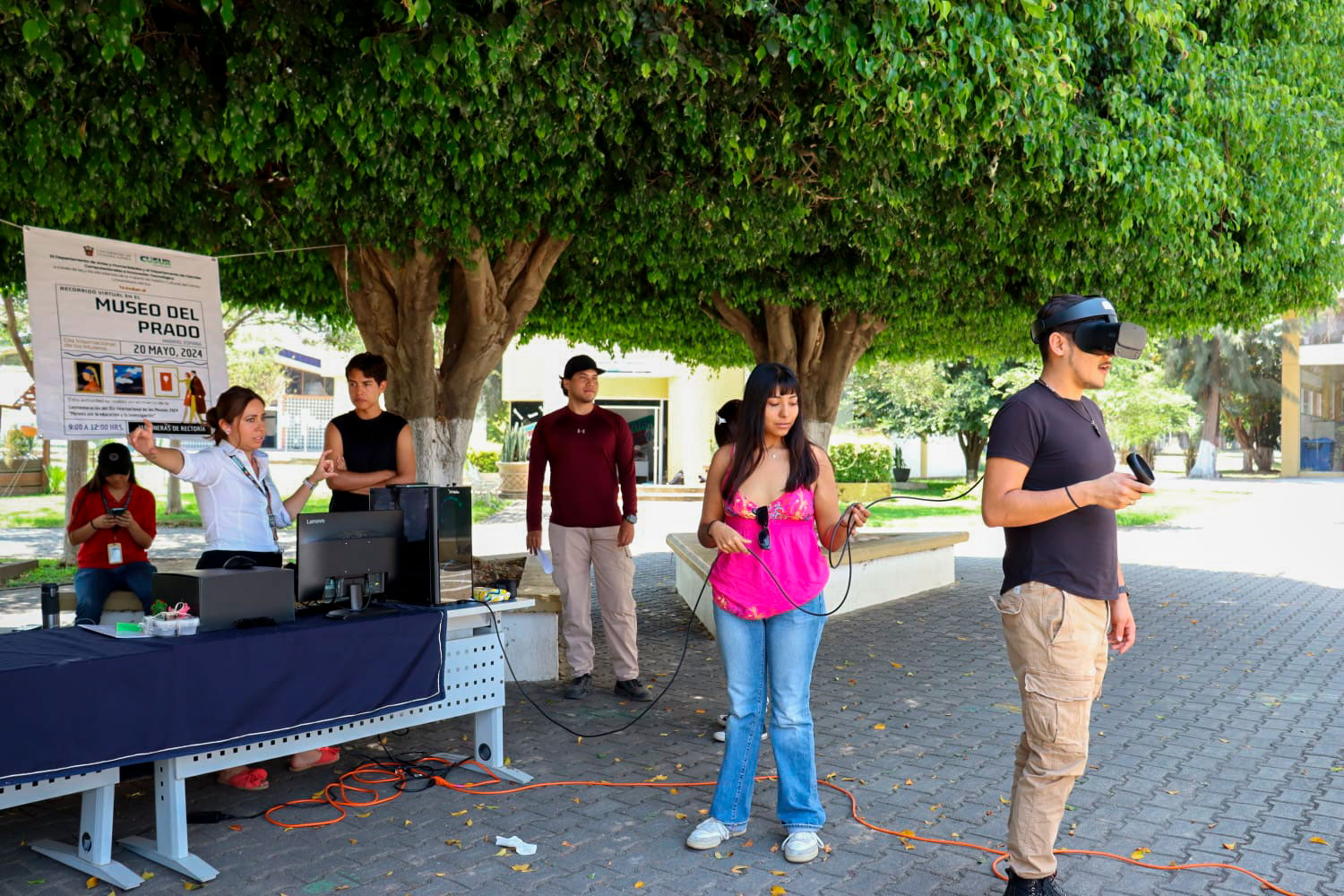 Alumnos de la Licenciatura en Letras Hispánicas y la Licenciatura en Desarrollo Turístico Sustentable, que cursaron la materia en gestión cultural, desempeñaron un papel crucial en la logística del evento. El cual se realizó en las jardineras al salir de la rectoría, donde los estudiantes proporcionaron instrucciones sobre el uso del equipo para acceder al museo digital, además controlaron la asistencia y recopilaron la retroalimentación del público.