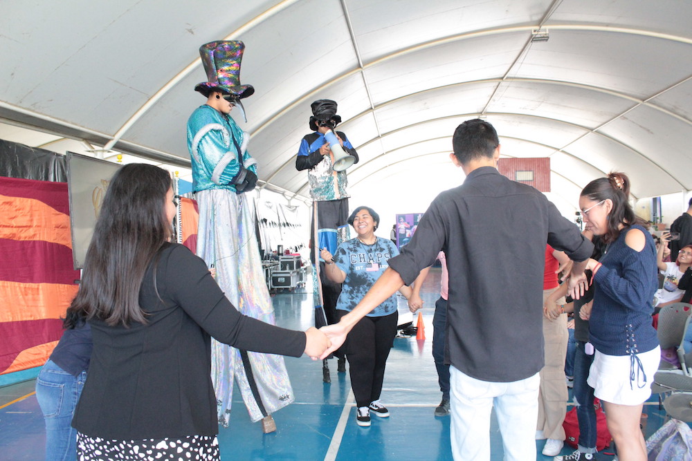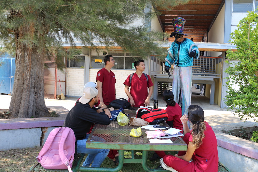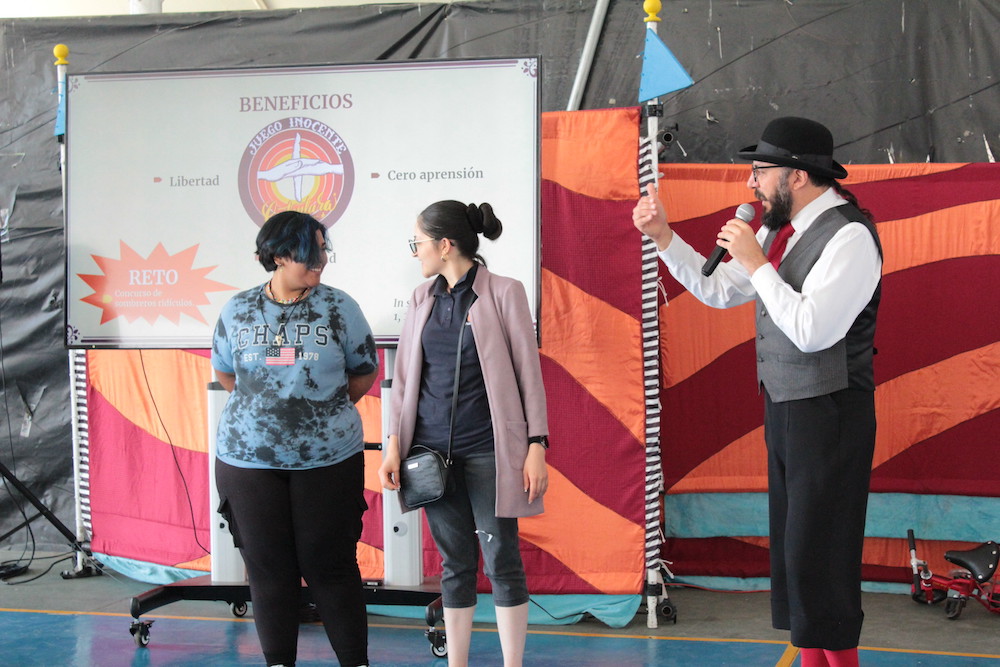 Andrés Aguilar, fundador de la organización voluntaria Risa Terapia A. C., realizó una presentación tipo espectáculo de circo para los estudiantes del CUSur, incluido un recorrido previo por las instalaciones del centro para invitarlos de maneras dinámicas a escuchar la charla con respecto a la salud mental, y puedan identificar en ellos aspectos psicológicos y cómo autocuidarse.