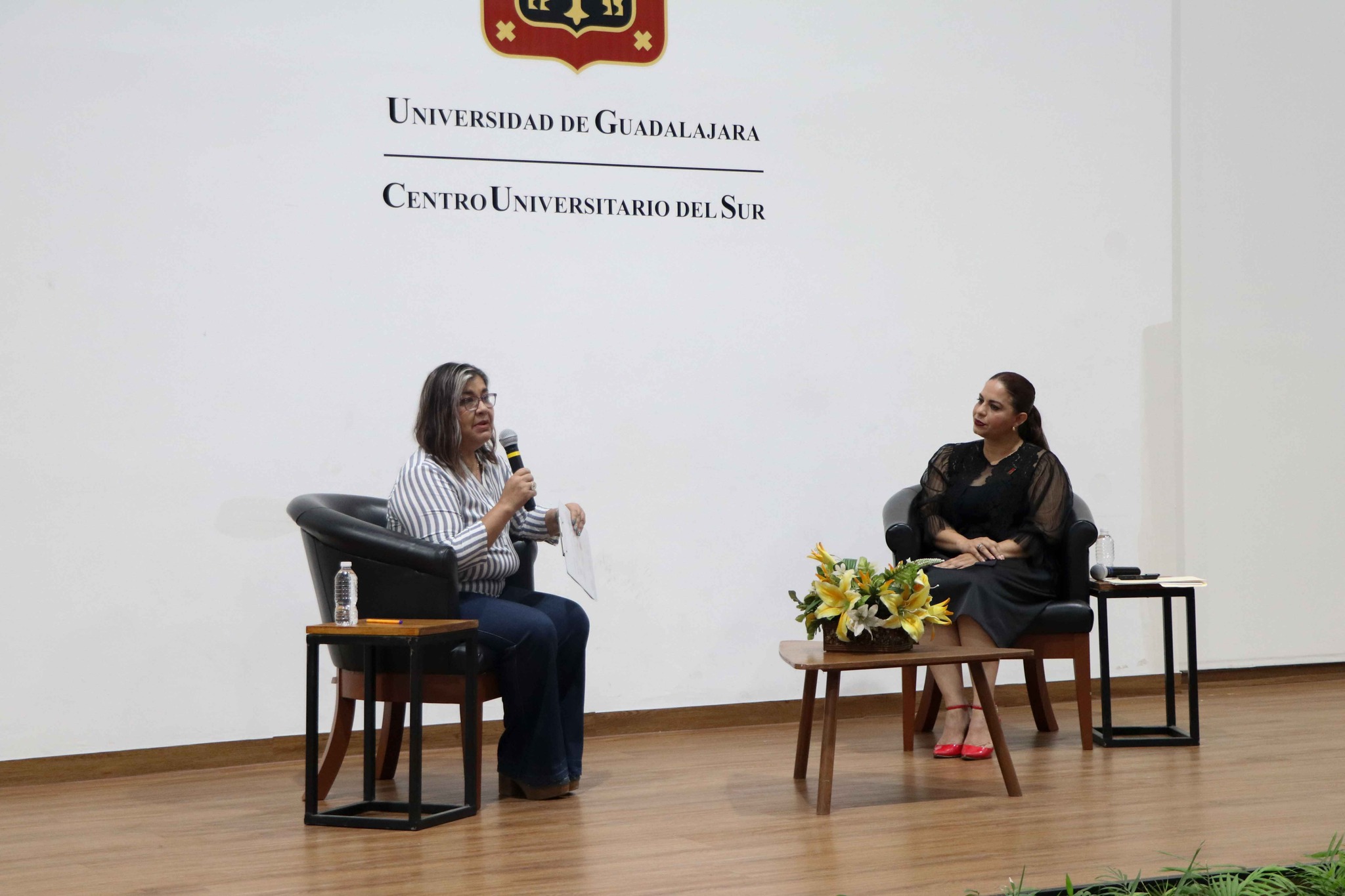 Magali Casillas, aspirante a la presidencia municipal de Zapotlán el Grande, participa en el Foro de Diálogo con Universitarios en el CUSur