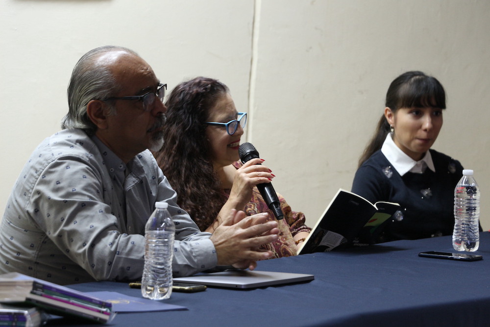 En la presentación participaron el profesor y escritor Ricardo Sigala, la estudiante de Letras Hispánicas Miriam Darnok Sandoval Gómez y Guadalupe Ángeles, la autora.
