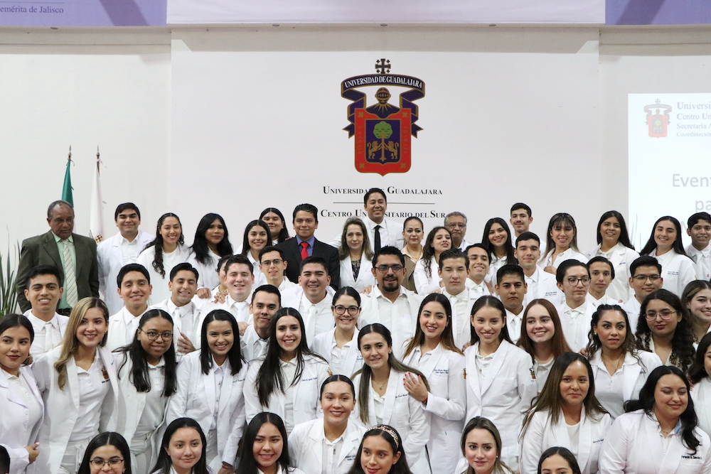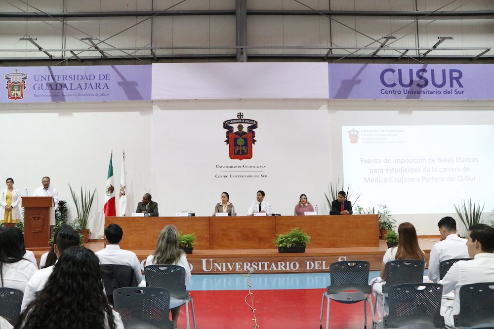 Este miércoles 15 de febrero se llevó a cabo, en el auditorio Adolfo Aguilar Zínser del Centro Universitario del Sur (CUSur), la imposición de batas blancas a los estudiantes de la licenciatura en Médico Cirujano y Partero.