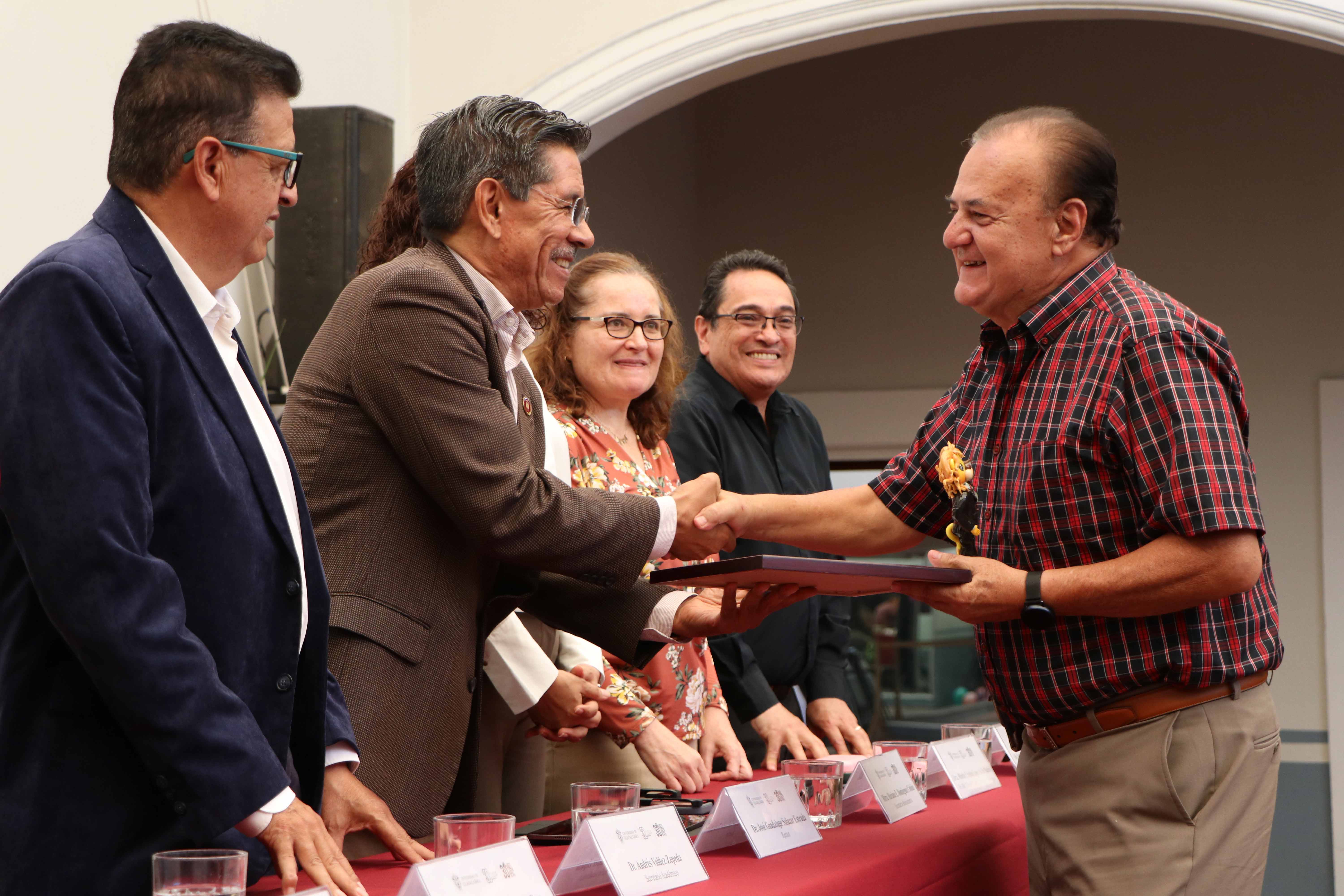Las autoridades universitarias entregaron reconocimientos a Daniel Ernesto Olmedo Abarca, Fernando González Rodríguez, José Antonio Ochoa Cuadra, Arturo Sánchez Campos, Pedro Octavio Montero Atilano, Luis Fernando Montañez Gutiérrez, Gloria Arteaga Vega y Juan Francisco Vázquez García De Alba.